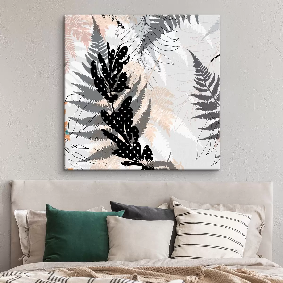Obraz prírodná tlač, dekoratívne lístie, zmes džungle, tvary papradia, neutrálna paleta, listové umenie Nr. s45104