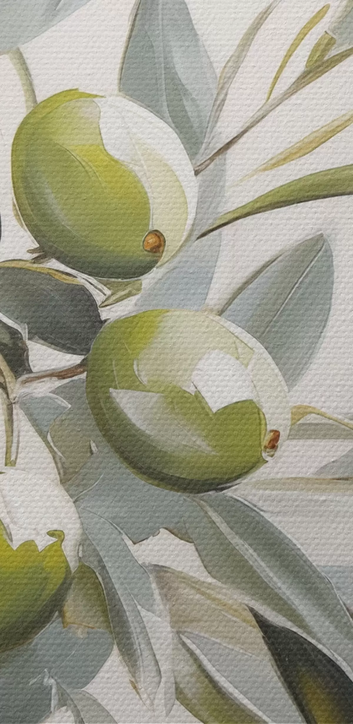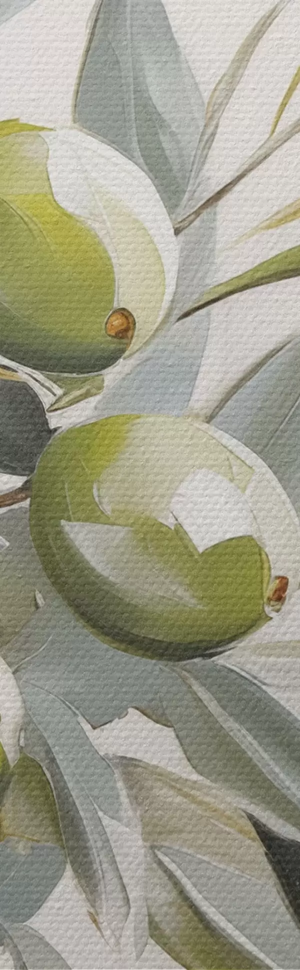Obraz olivová ratolesť, zelené plody, tlmené tóny, listy, minimálna, prírodná, olejomaľba, botanická Nr. s45109