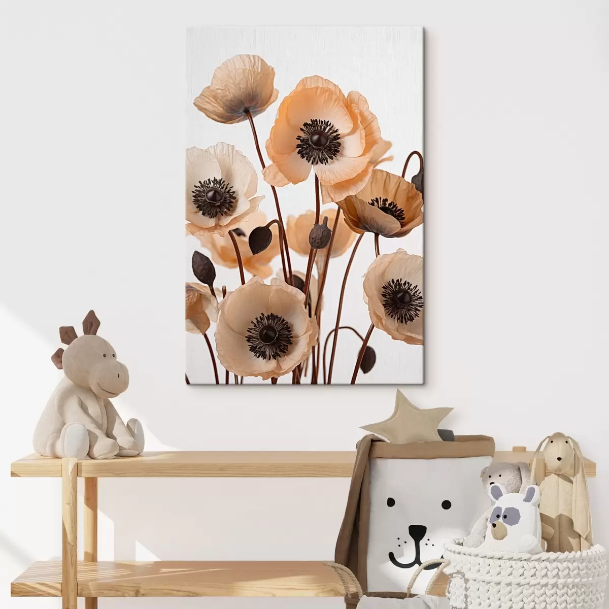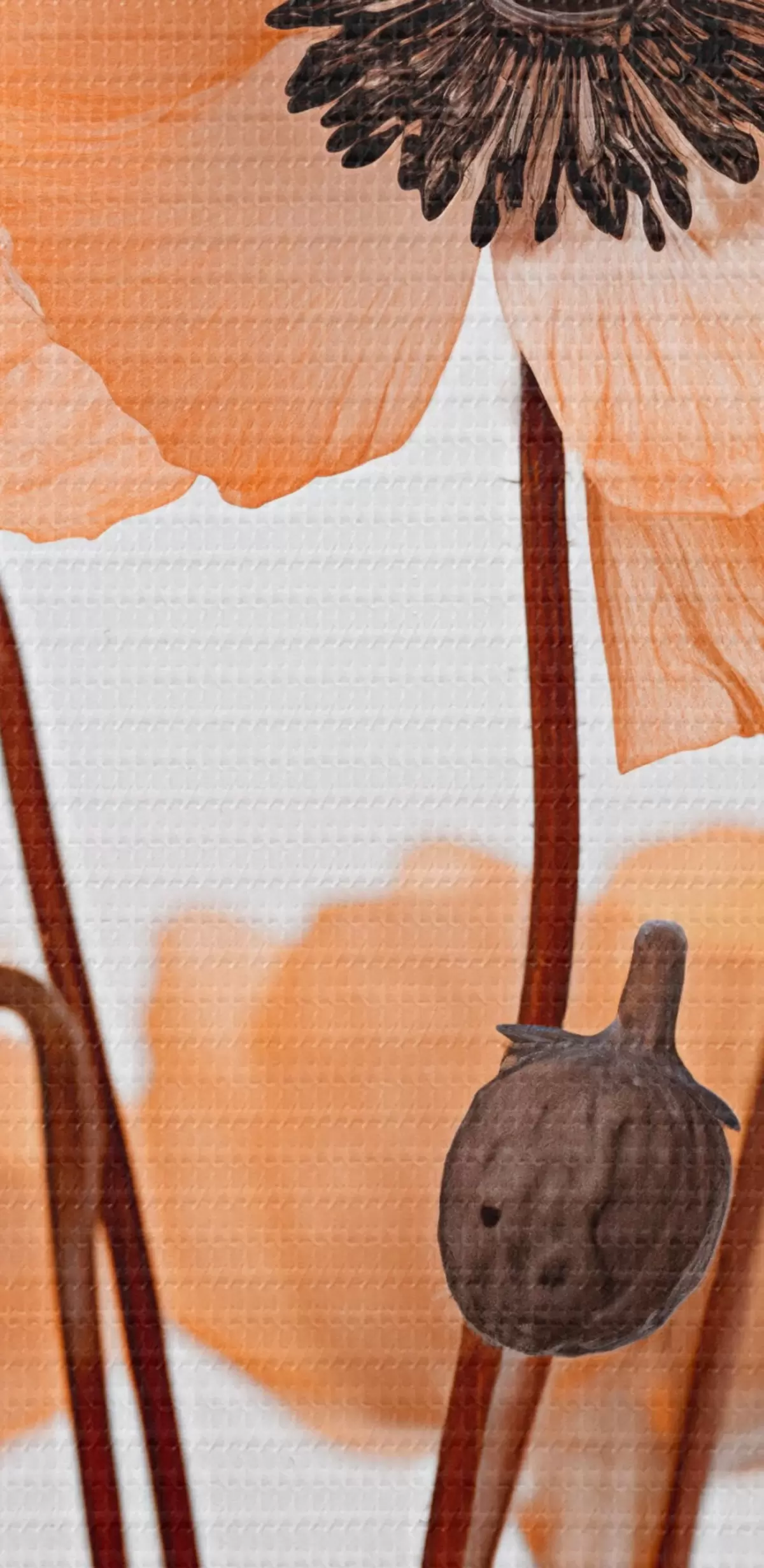 Obraz Oranžové maky, sušené kvety na svetlom pozadí, mäkké osvetlenie, jemné okvetné lístky, kvetinová výzdoba Nr. s45168