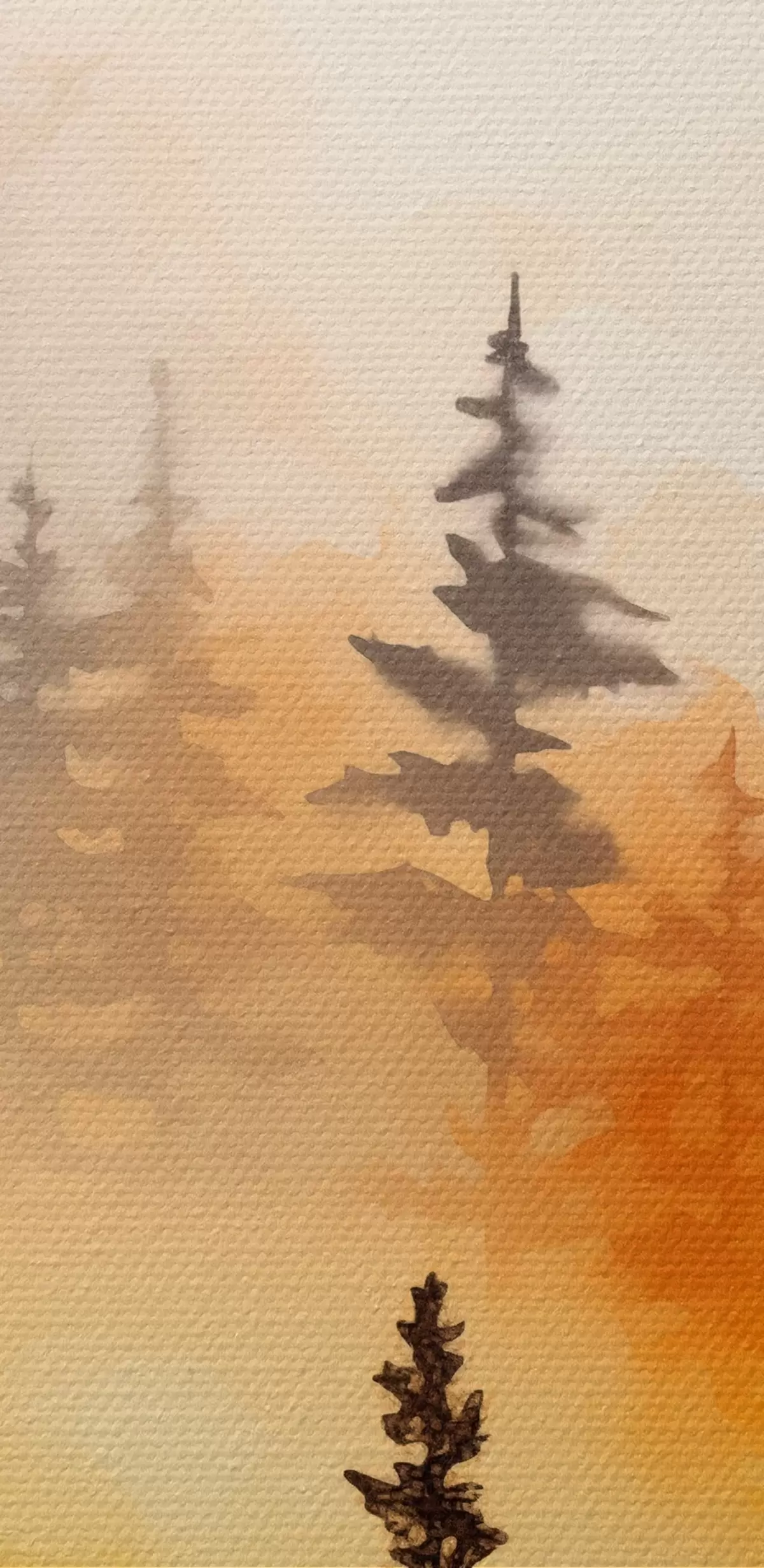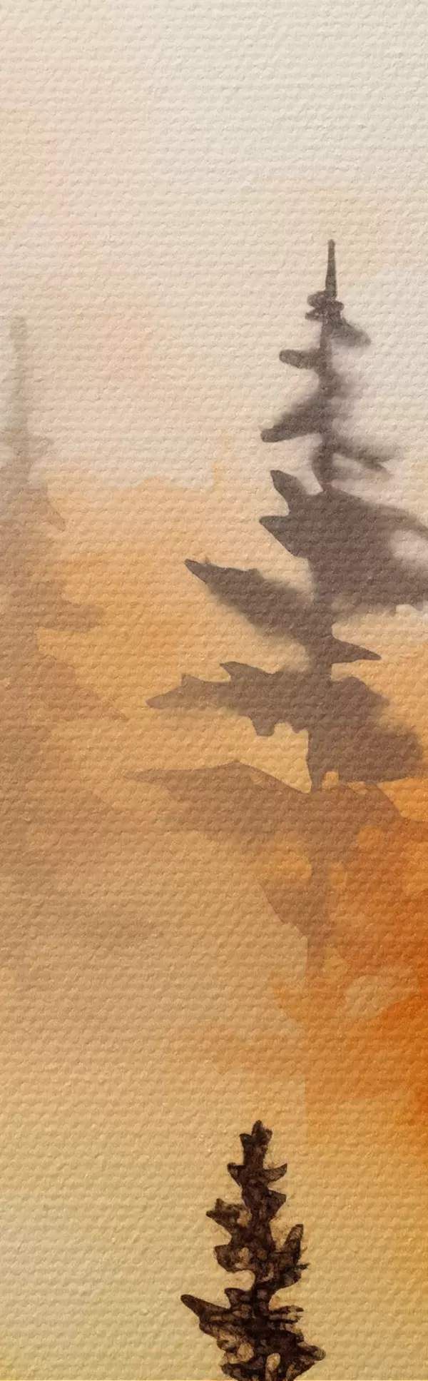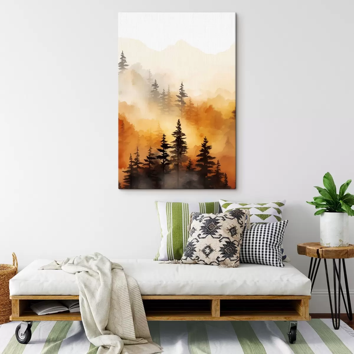 Obraz Krajinomaľba akvarelom imitujúca les s vysokými borovicami a horami v pozadí Nr. s45170