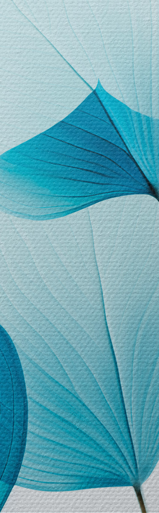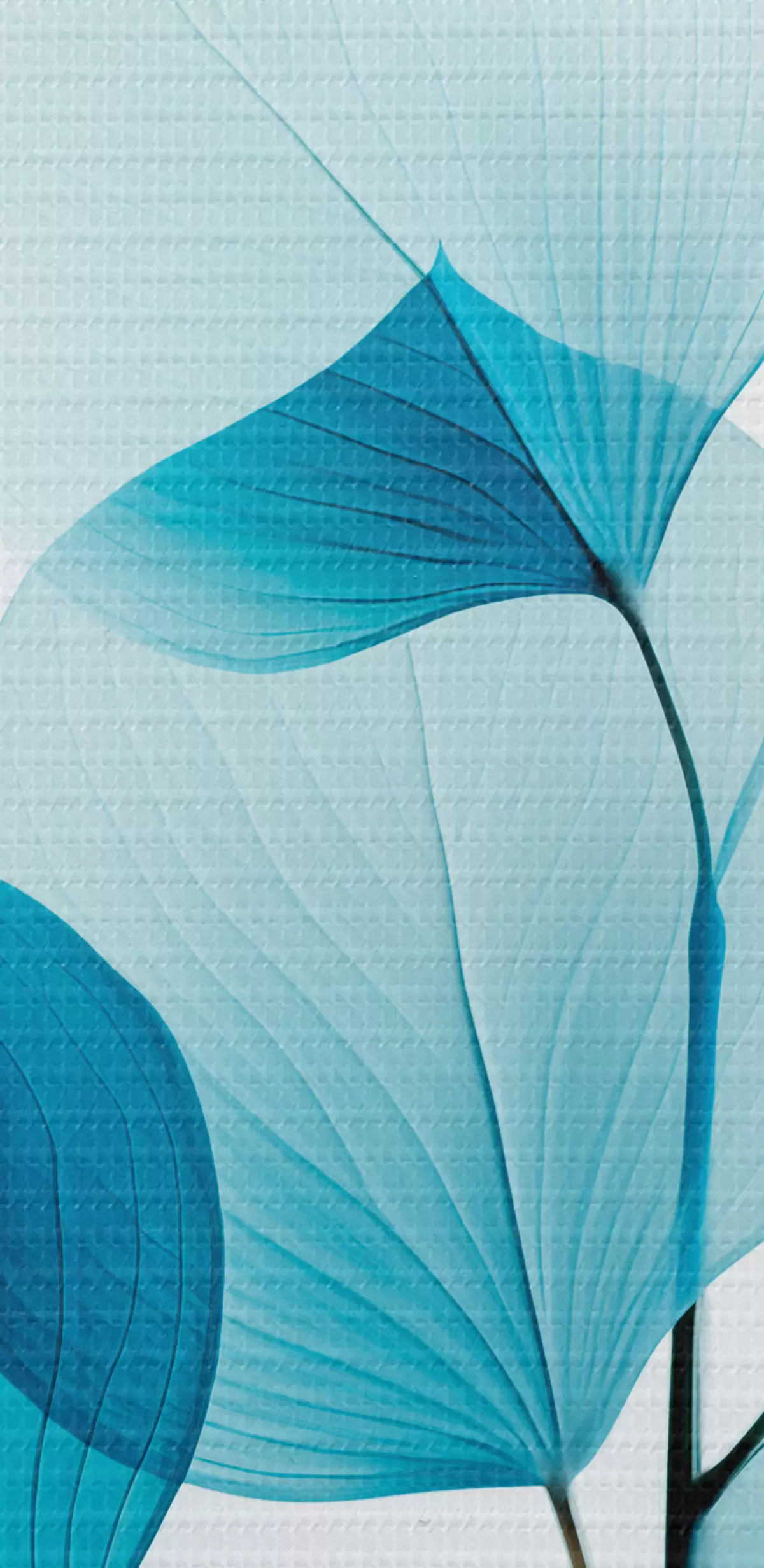 Obraz Vetva s priesvitnými modrými listami, viditeľné jemné žilky, ľahká a pokojná kompozícia, minimalistická estetika Nr. s45175