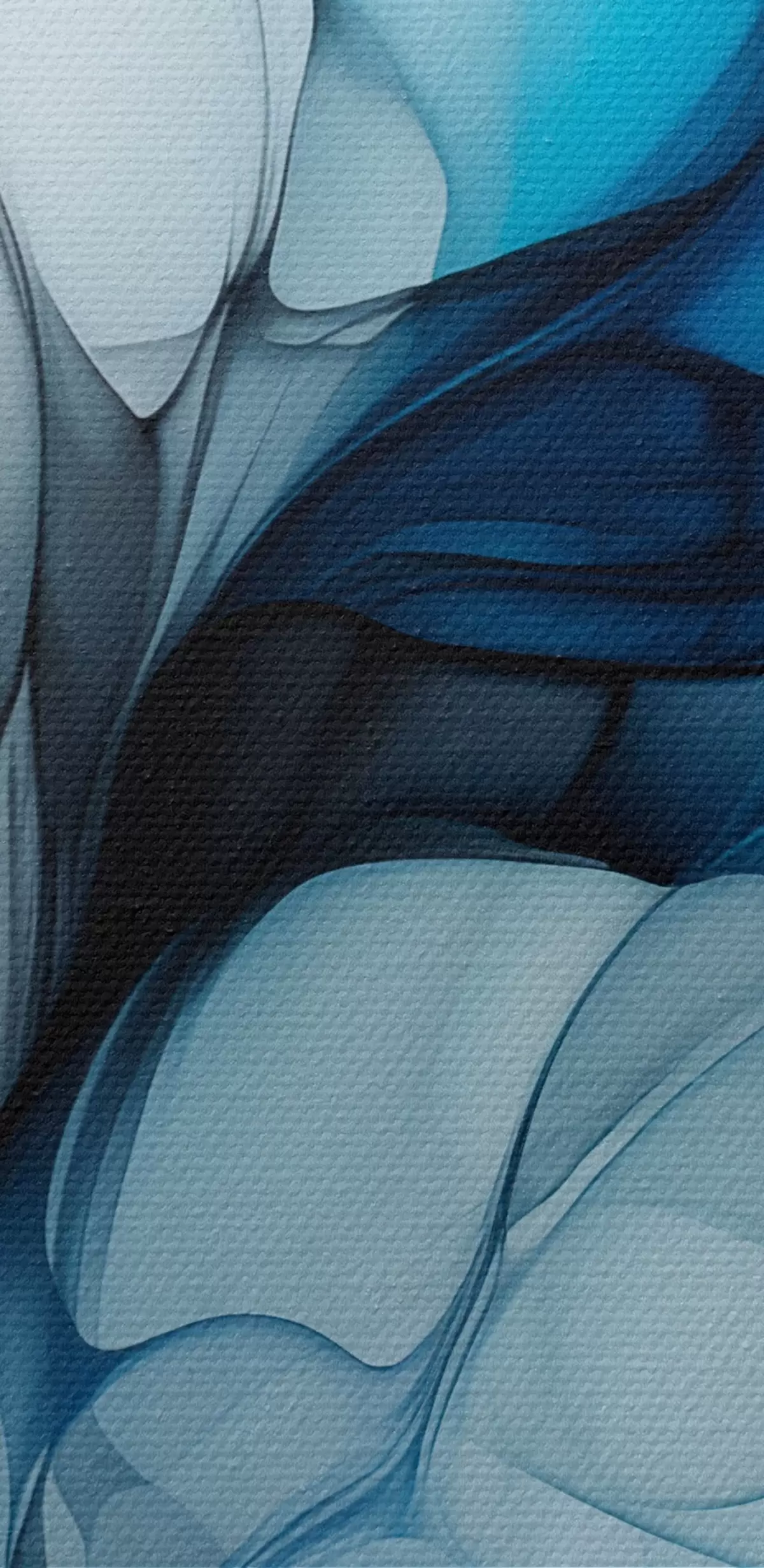 Obraz Abstraktná kompozícia s plynúcimi líniami a priesvitnými okvetnými lístkami v odtieňoch modrej, bielej a béžovej, imitácia alkoholového atramentu Nr. s45178