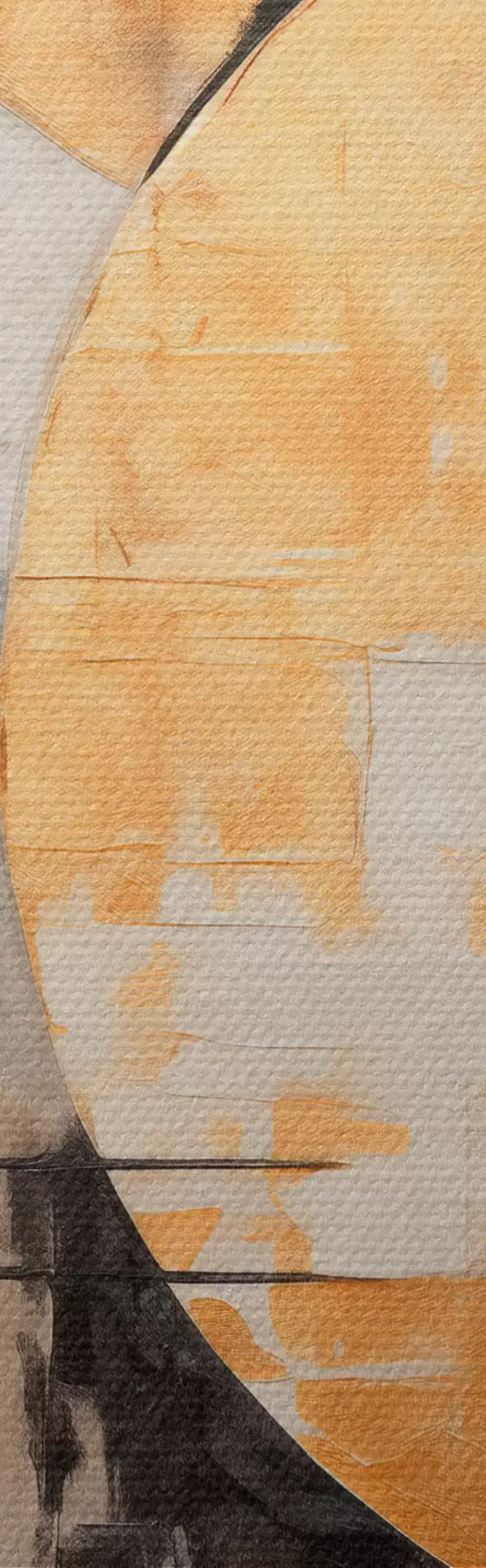 Obraz Abstraktná maľba s kruhmi, čiernymi a žltými čiarami a pozadím so sivými a bielymi tónmi Nr. s45185