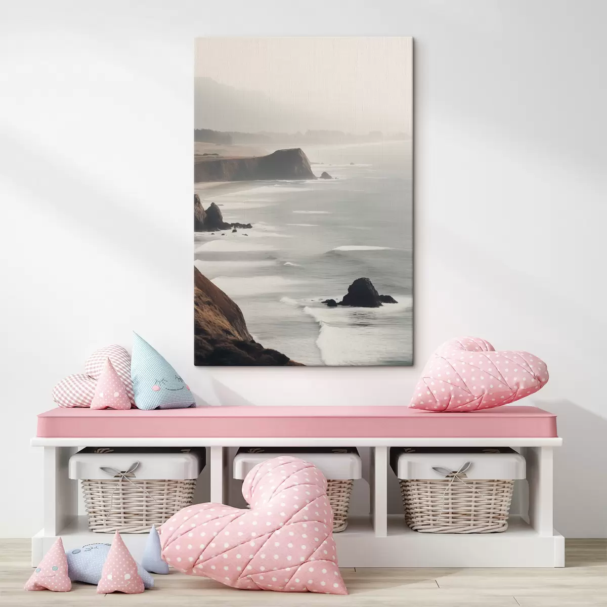 Obraz Skalnaté útesy a morské pobrežie, vlny narážajúce na breh, krajina s náladovou atmosférou, zemité tóny Nr. s45194