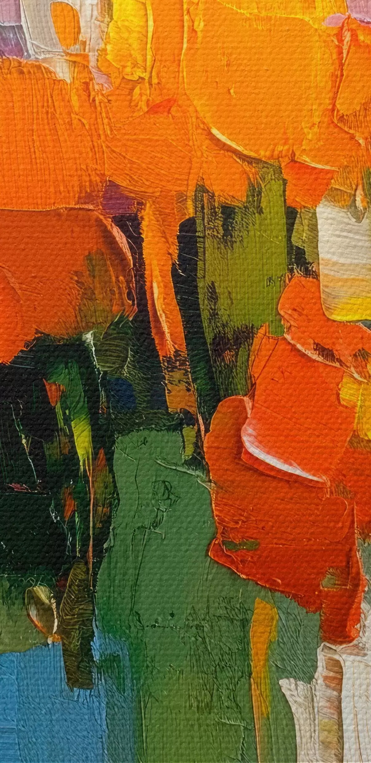 Obraz je možné zavesiť ihneď po jeho prevzatí. Obraz bude napnutý na drevených nosidlách so šírkou 2 cm.