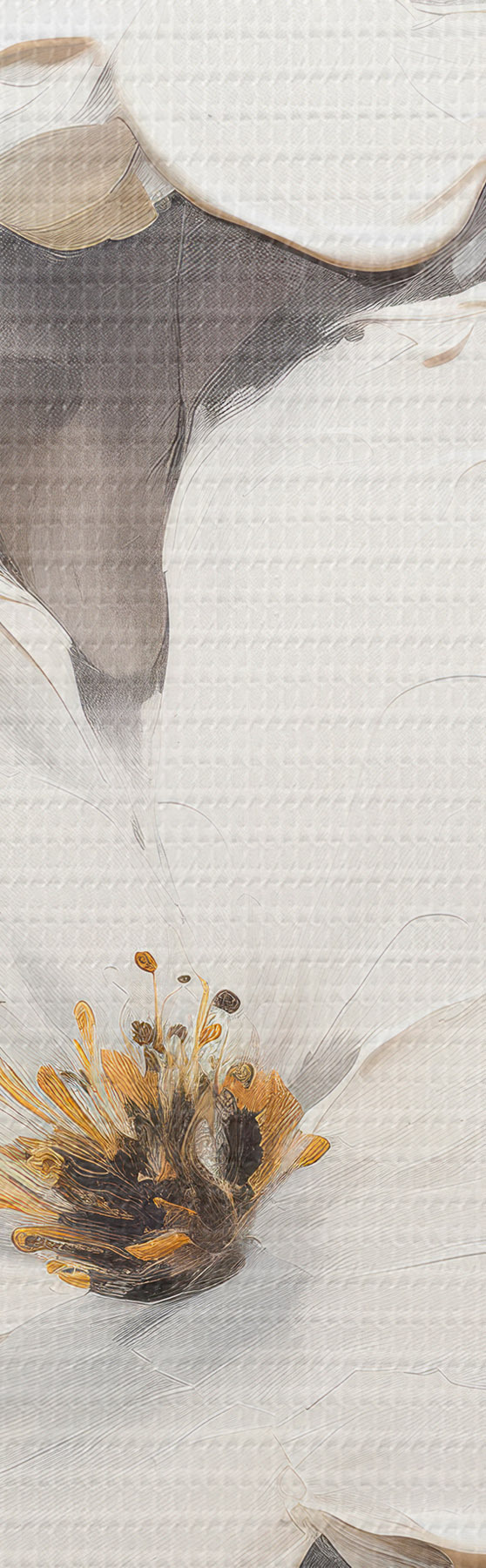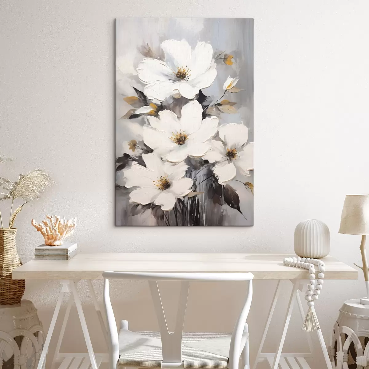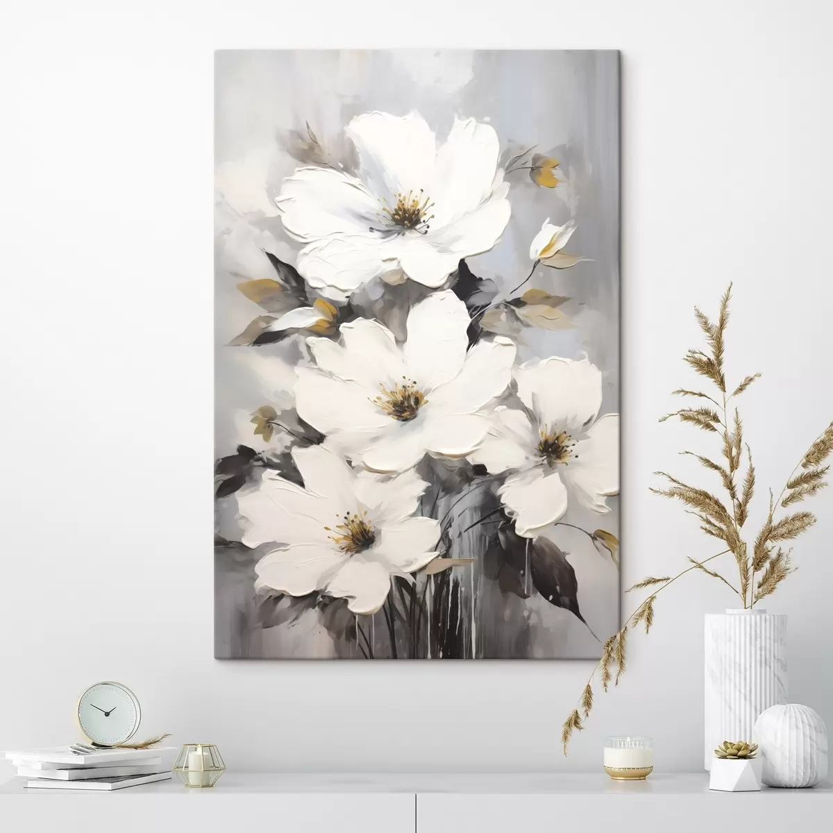 Obraz Biele kvety: objemová maľba na sivom pozadí Nr. s45252