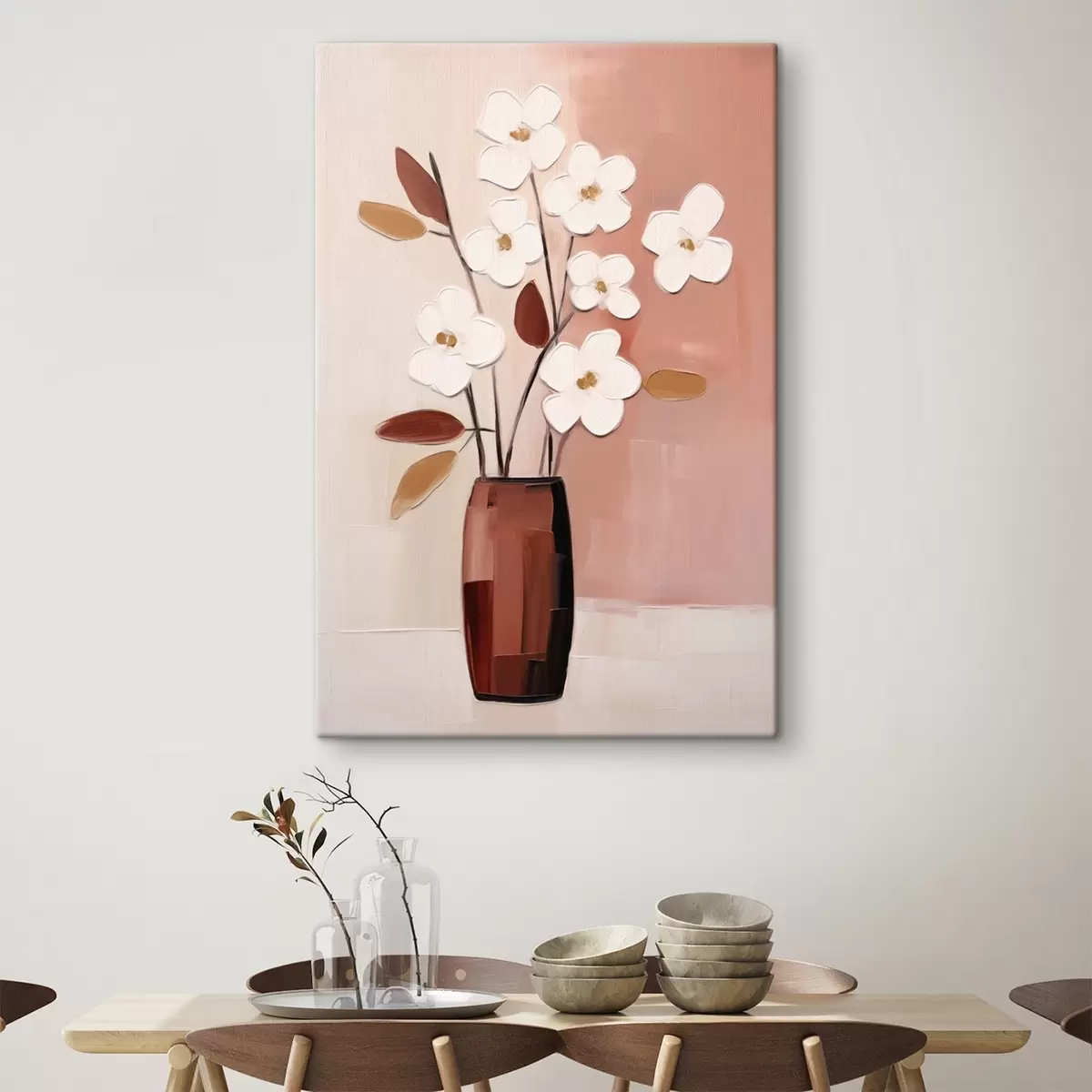 Obraz Biele kvety v tmavej váze: moderná kvetinová maľba Nr. s45255