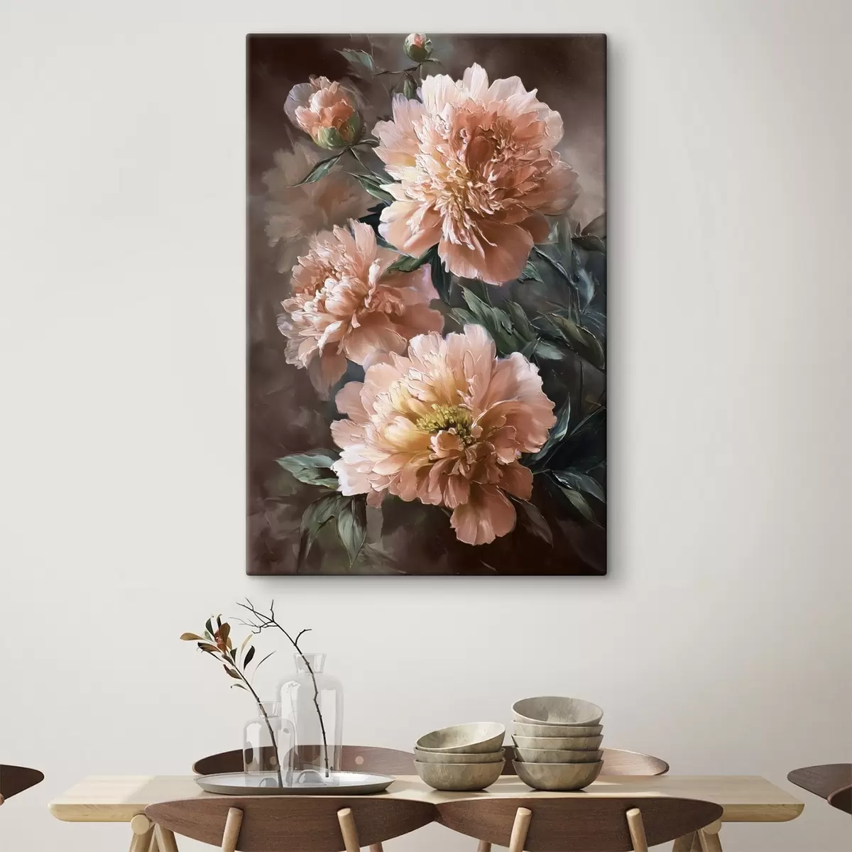 Obraz Svieže ružové pivonky na teplom pozadí v štýle ťahov štetcom Nr. s45260