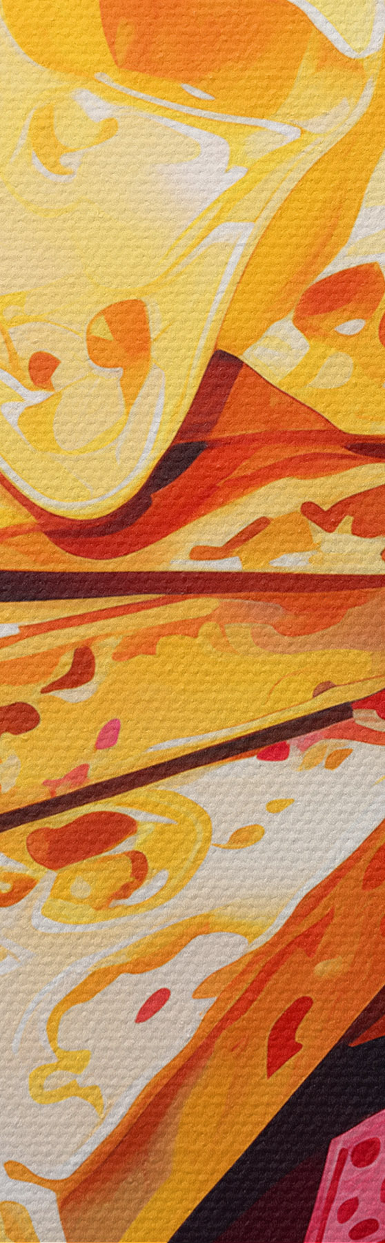 Obraz je možné zavesiť ihneď po jeho prevzatí. Obraz bude napnutý na drevených nosidlách so šírkou 2 cm.