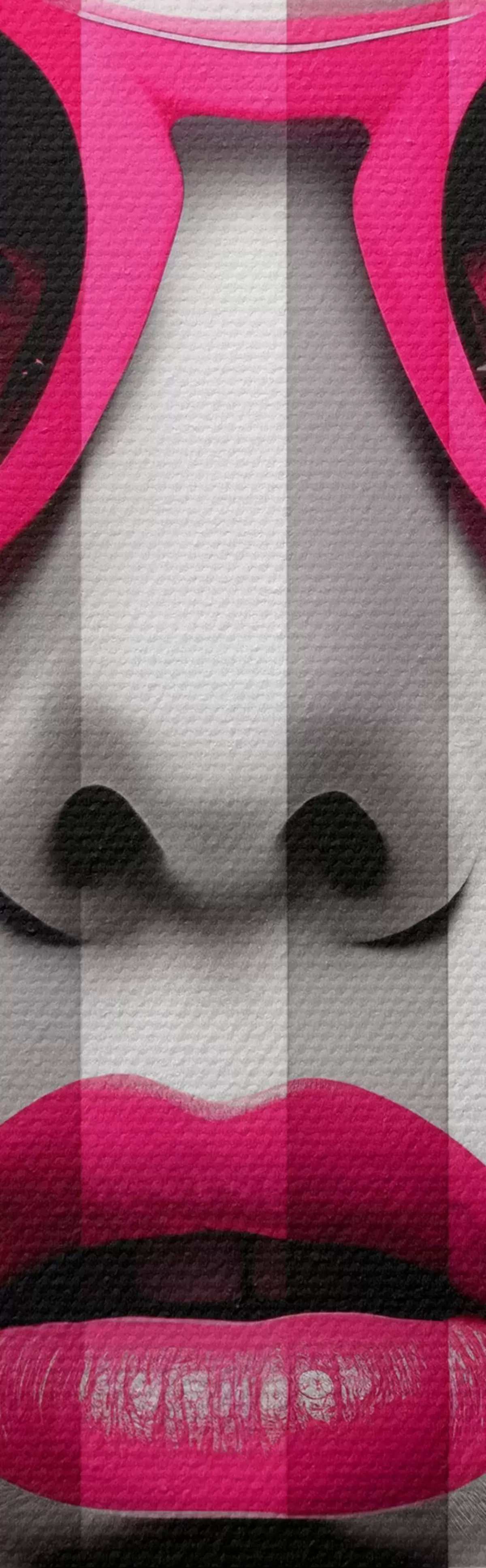 Obraz Žena s ružovými okuliarmi s čiernymi a bielymi pruhmi Nr. s45315