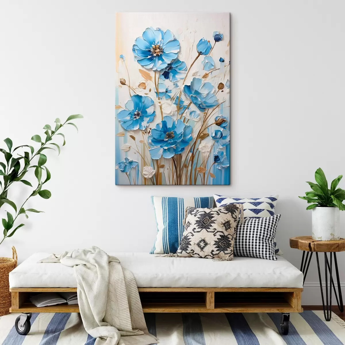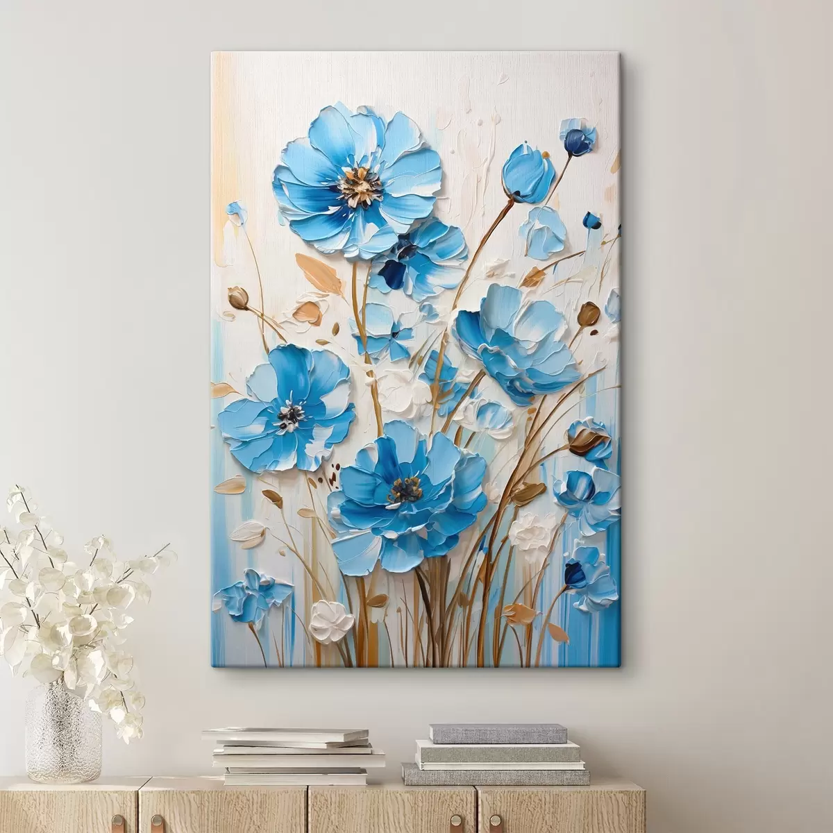 Obraz je možné zavesiť ihneď po jeho prevzatí. Obraz bude napnutý na drevených nosidlách so šírkou 2 cm.