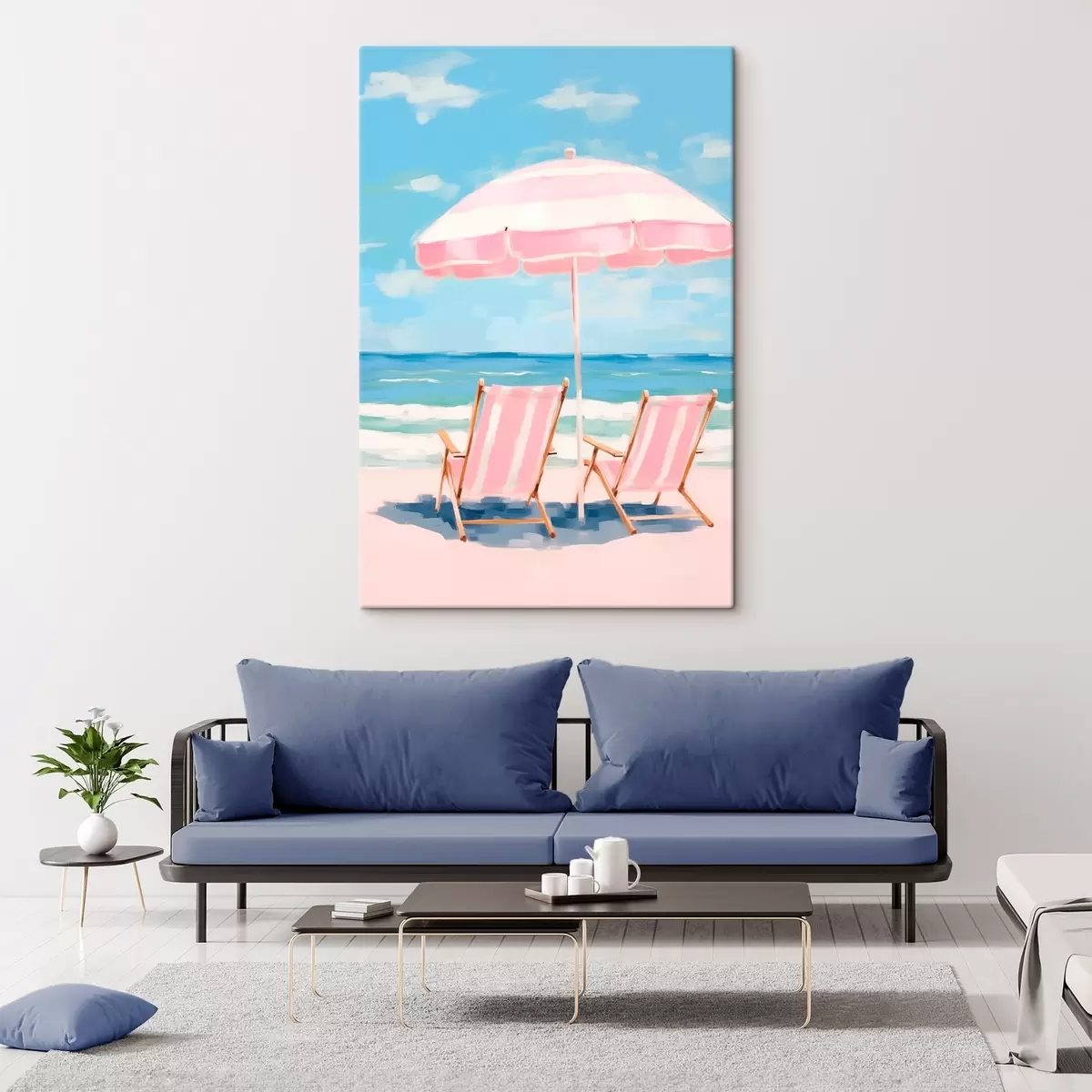 Obraz Plážový slnečník a ležadlá na pobreží Nr. s45442