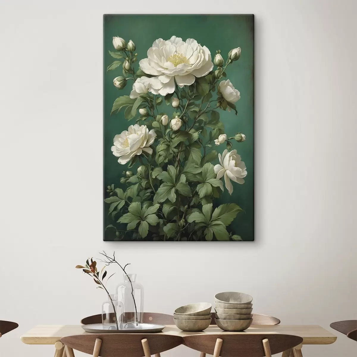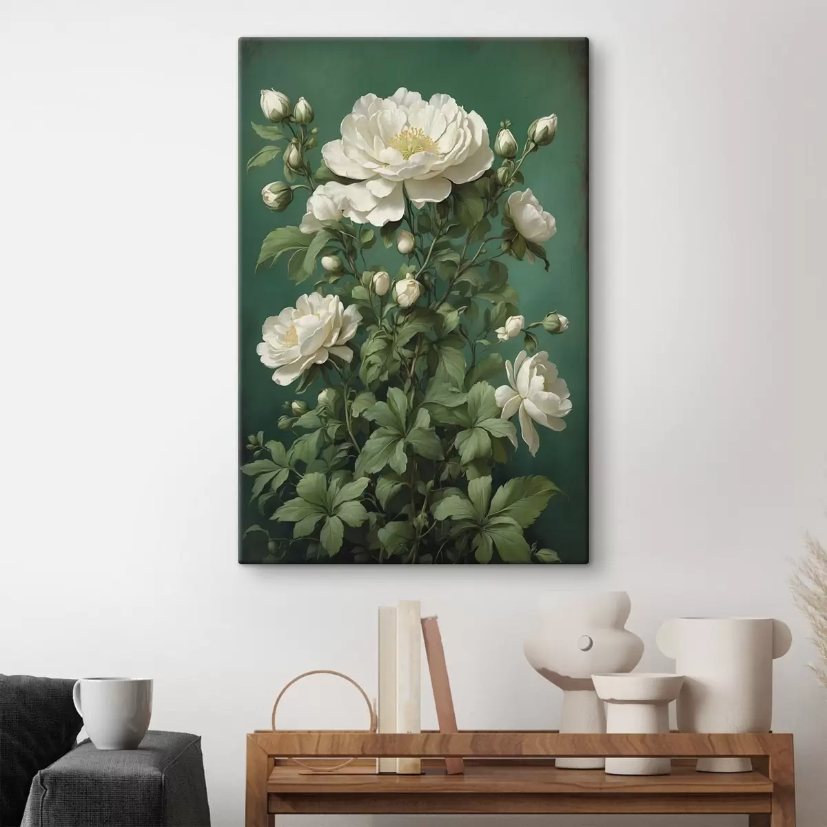 Obraz Krémové kvety pivonky na zelenom pozadí Nr. s45491