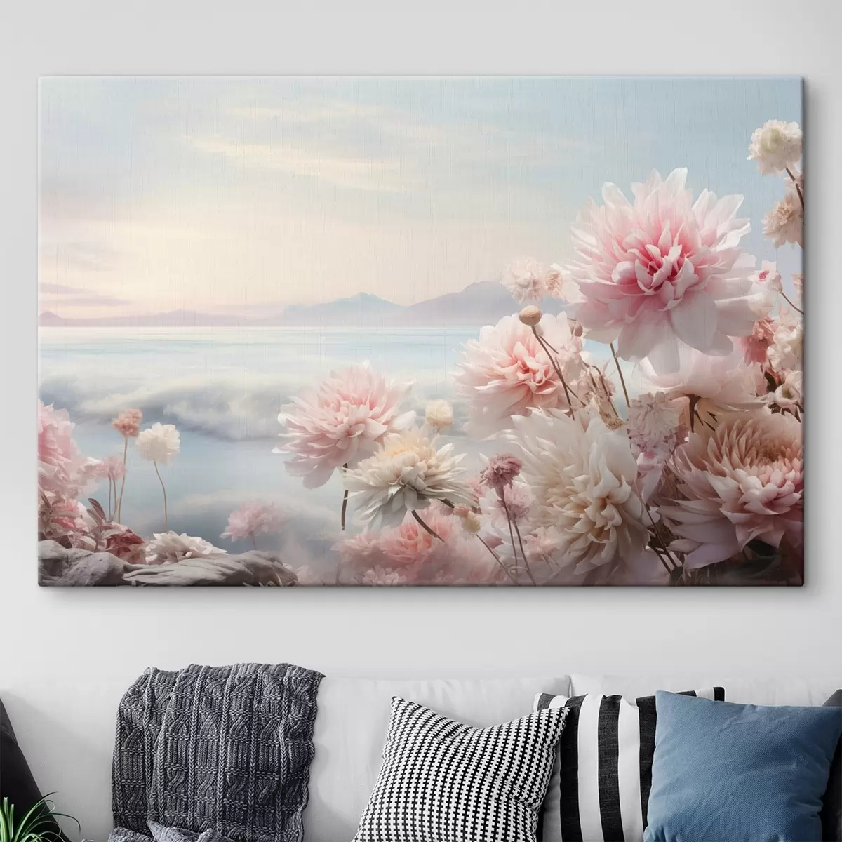 Obraz Jemné ružové kvety pri mori na úsvite Nr. s45496