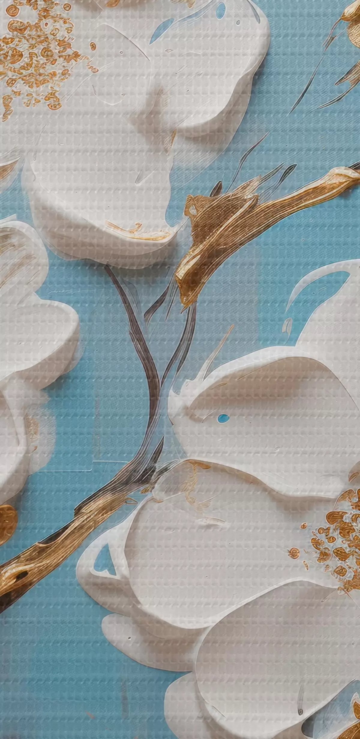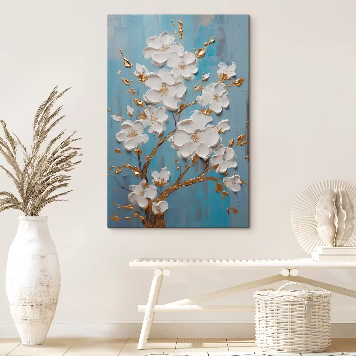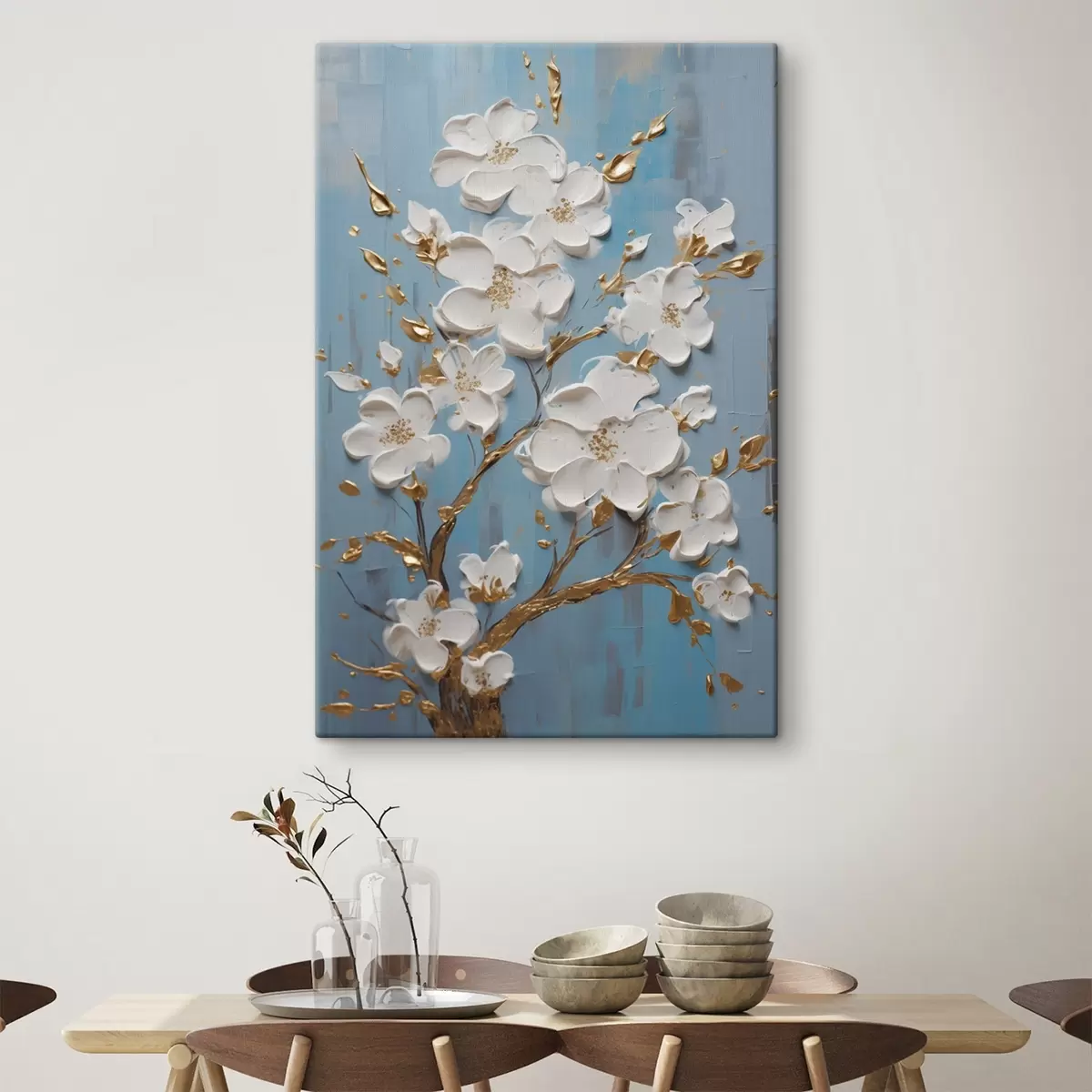 Obraz Biele kvety na vetve: dekoratívny motív v svetlomodrých tónoch Nr. s45541
