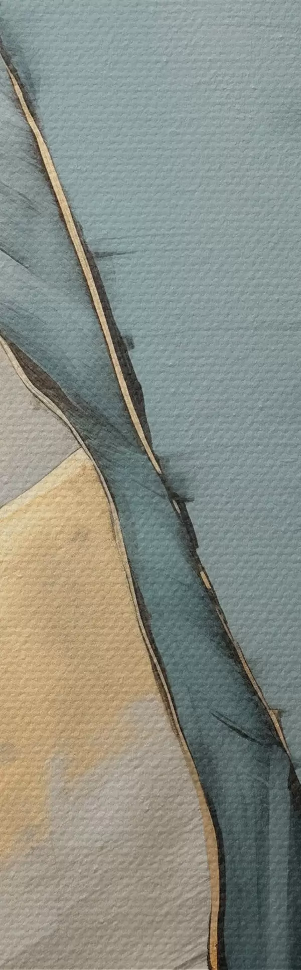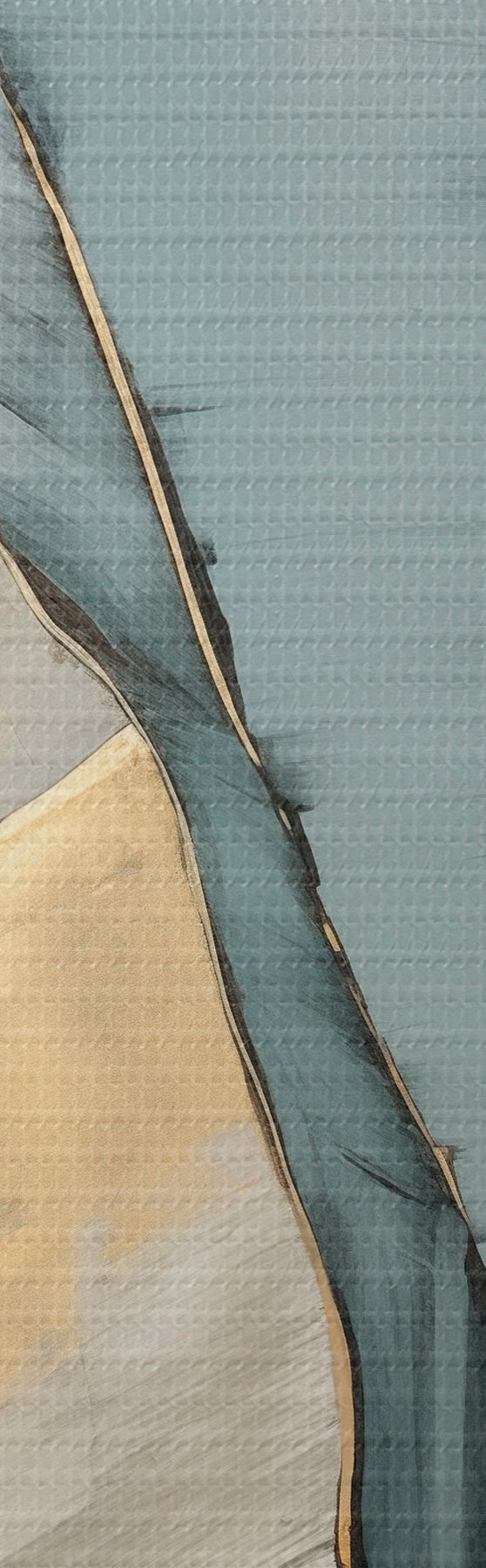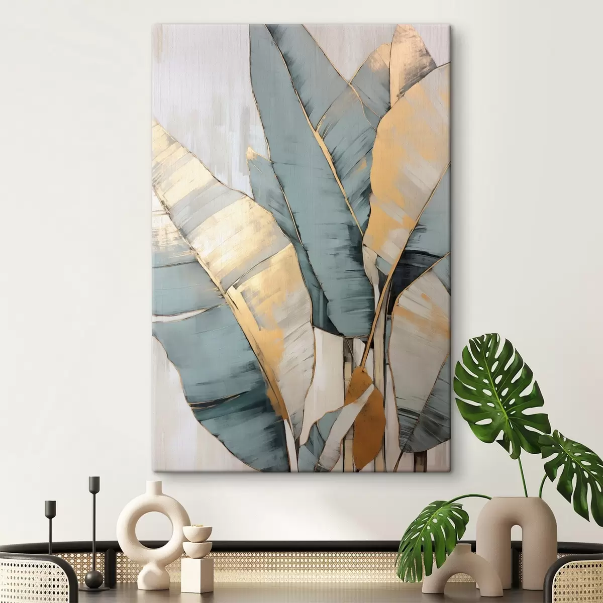 Obraz Tlmené modré, sivé a žlté banánové listy s viditeľnými ťahmi štetca na bielom abstraktnom pozadí Nr. s45552