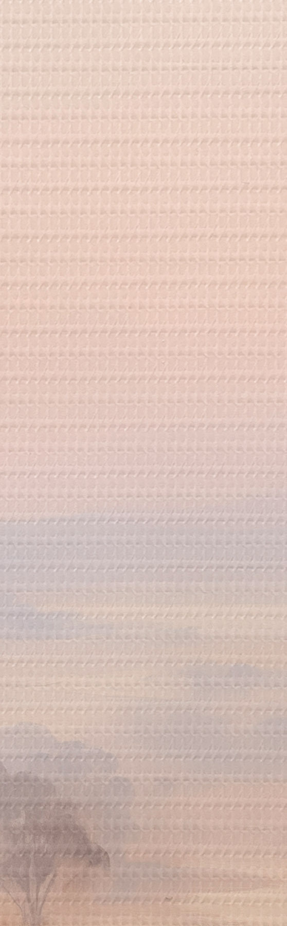 Obraz Krajina s kríkmi a stromami v pastelových odtieňoch ružovej , oranžovej a hnedej farby s horami v pozadí Nr. s45554