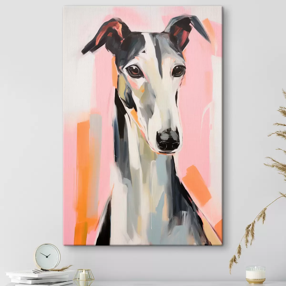 Obraz Chrt na pozadí ružových, oranžových a bielych ťahov štetcom Nr. s45566