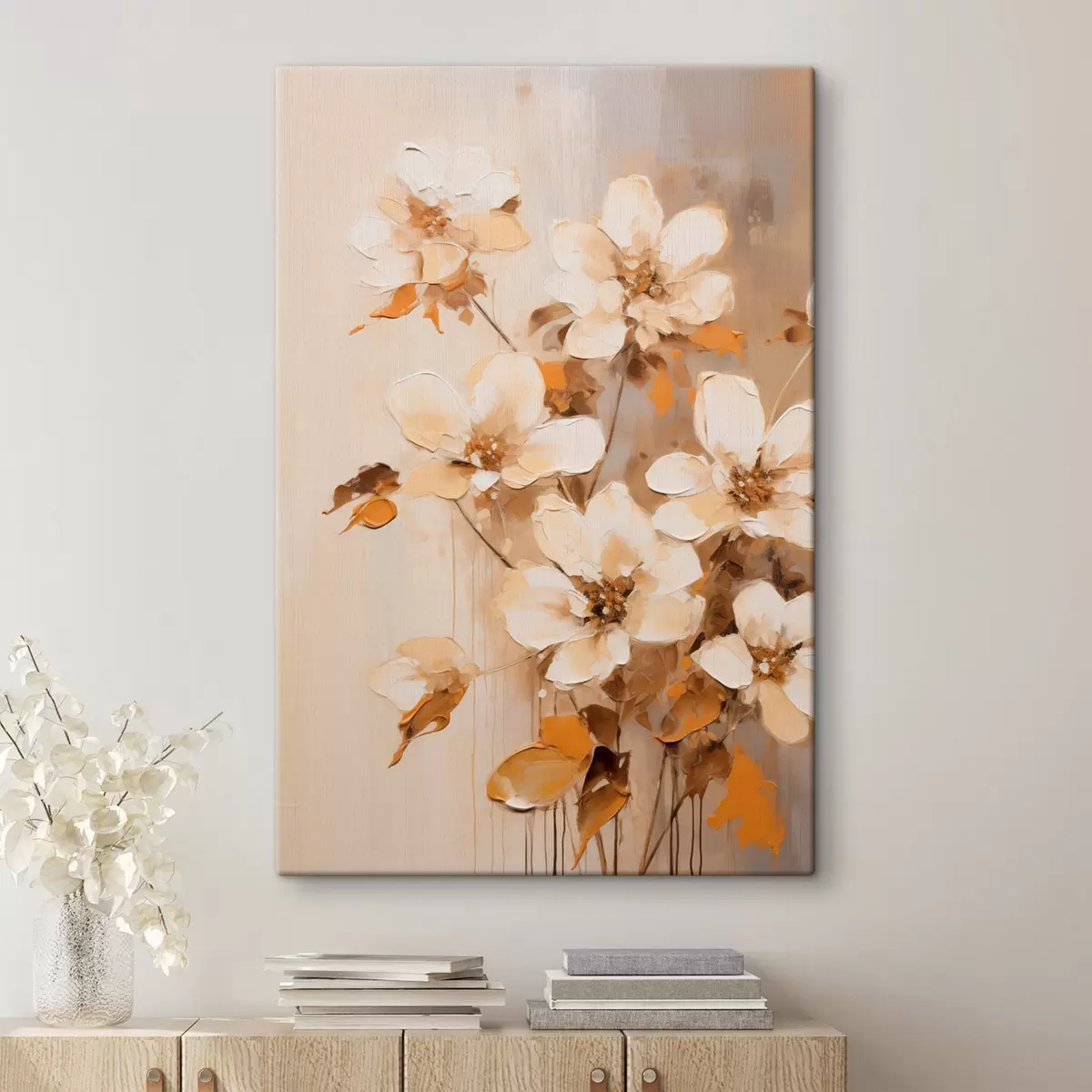 Obraz Biele kvety s oranžovými listami, jemné ťahy štetcom, kvetinové aranžmá, botanické umenie Nr. s45574
