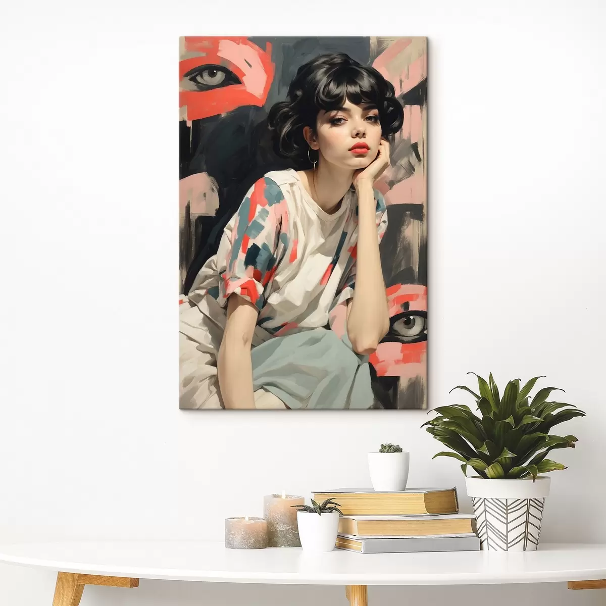 Obraz Portrét dievčaťa na pozadí s očami a abstraktnými ťahmi Nr. s45623