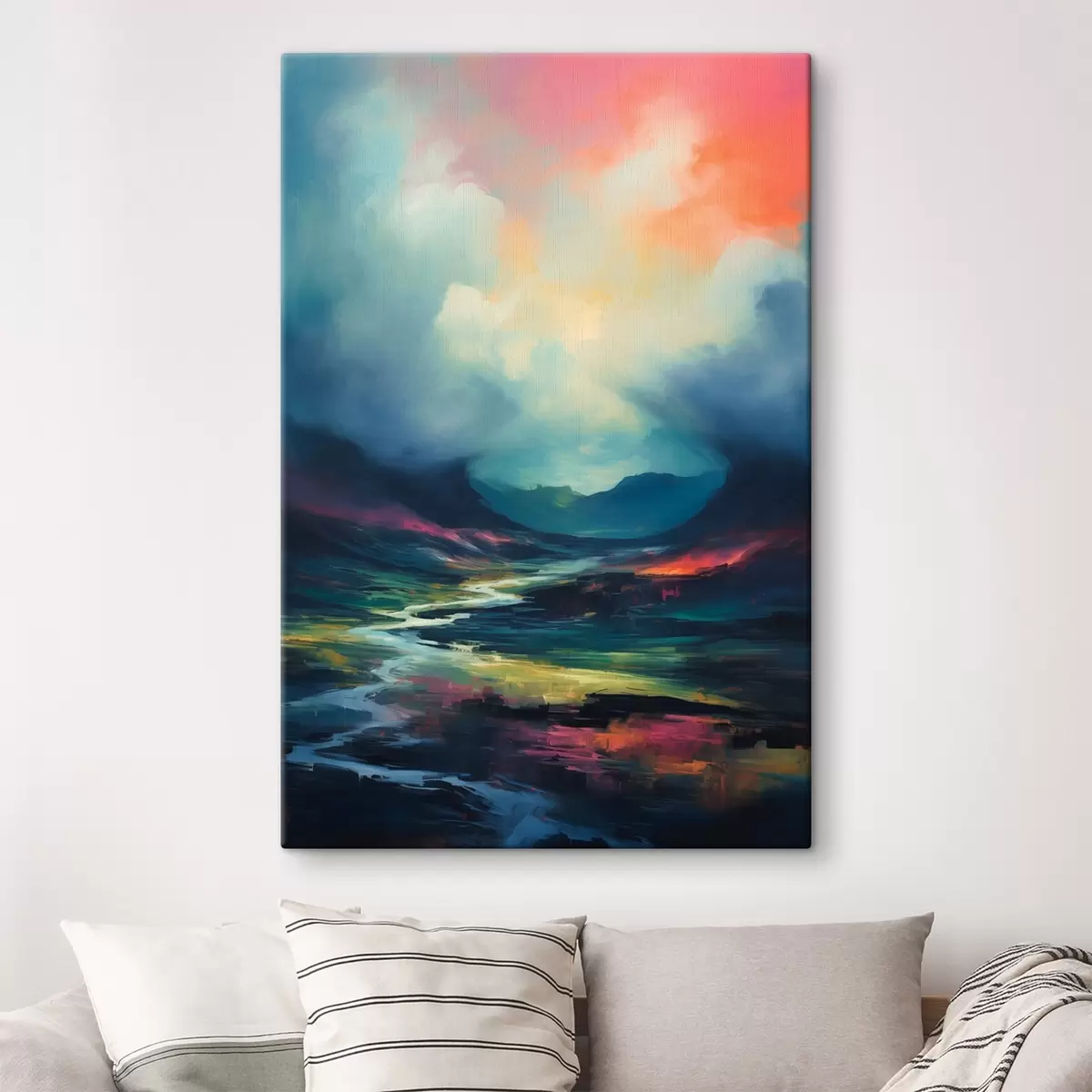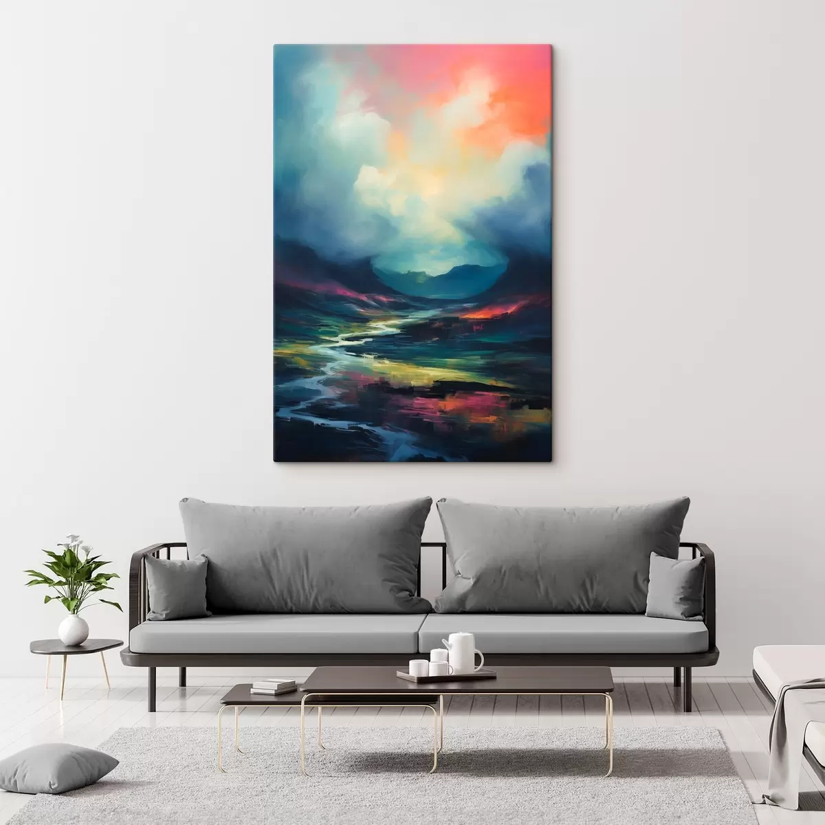 Obraz Abstraktná krajina s riekou a horami Nr. s45627