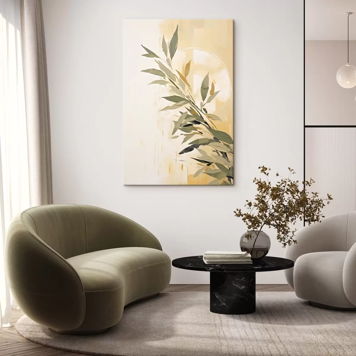 Obraz Botanická vetva so zelenými listami na teplom pozadí Nr. s45690