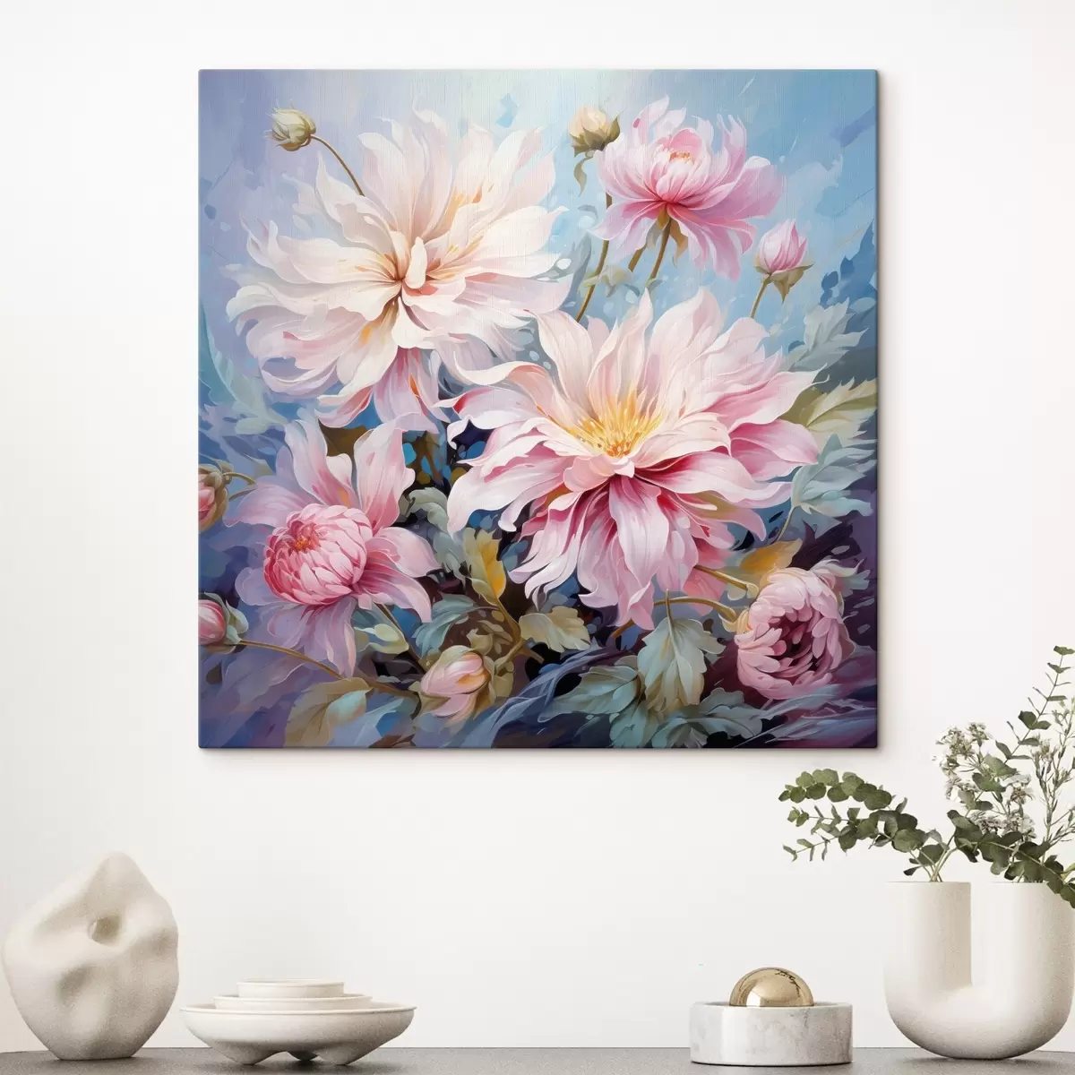 Obraz je možné zavesiť ihneď po jeho prevzatí. Obraz bude napnutý na drevených nosidlách so šírkou 2 cm.