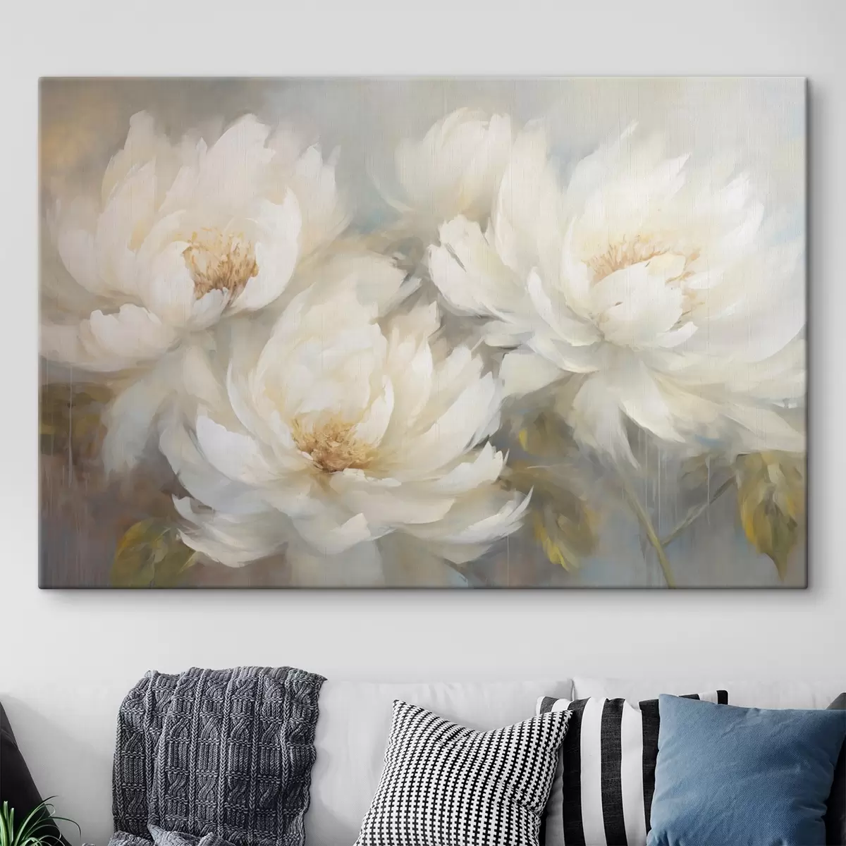 Obraz Tri svieže biele pivonky na jemnom pozadí Nr. s45808
