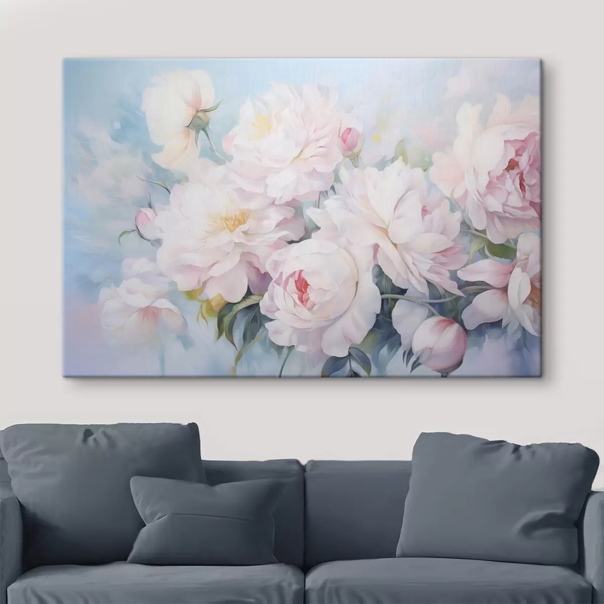 Obraz Jemné ružové pivonky na modrom pozadí Nr. s45813