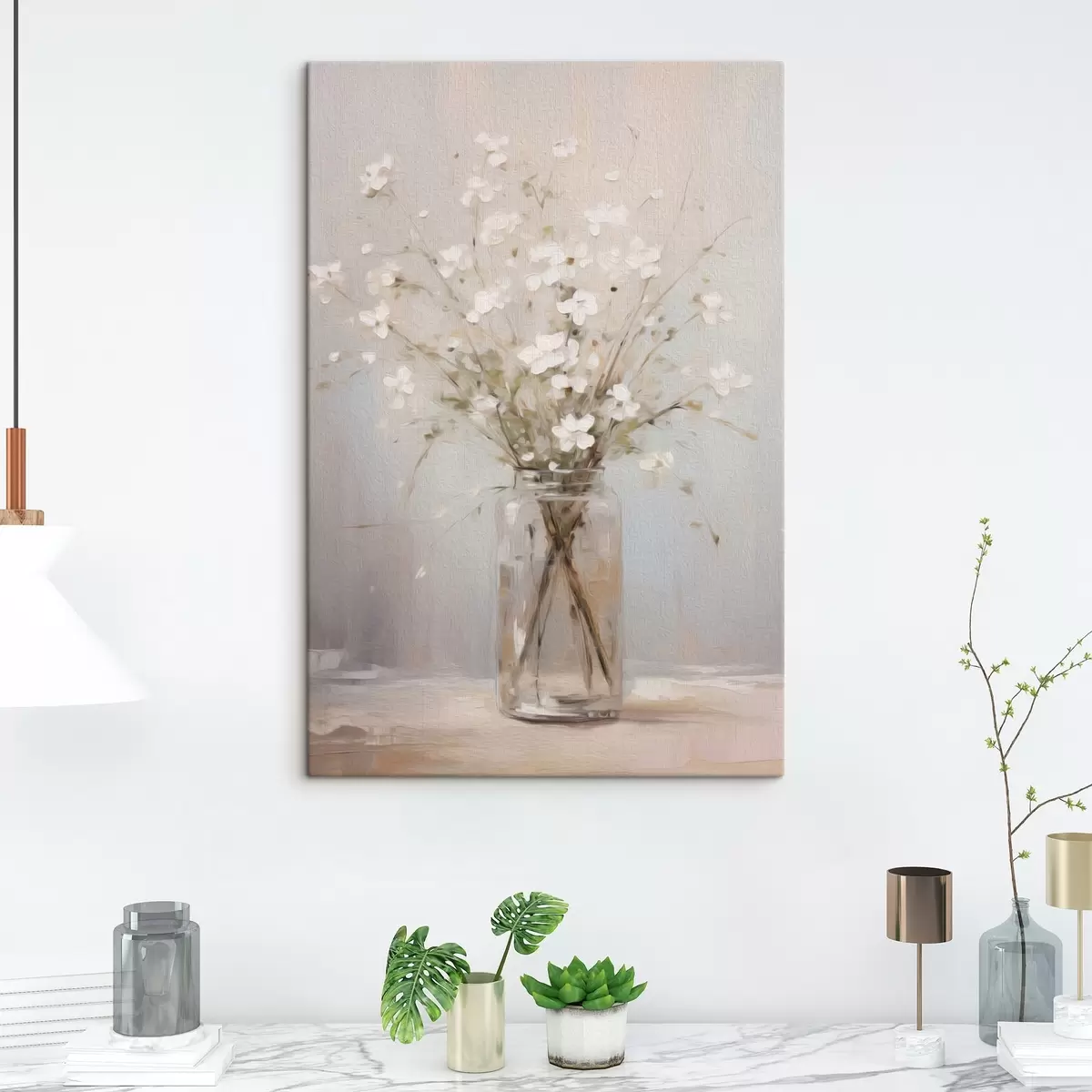 Obraz Kytica bielych kvetov v priehľadnej sklenenej váze Nr. s45814