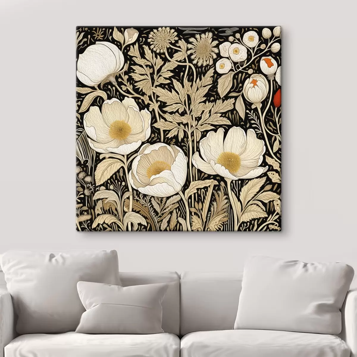 Obraz Krémové kvety a trávy na čiernom pozadí Nr. s45816