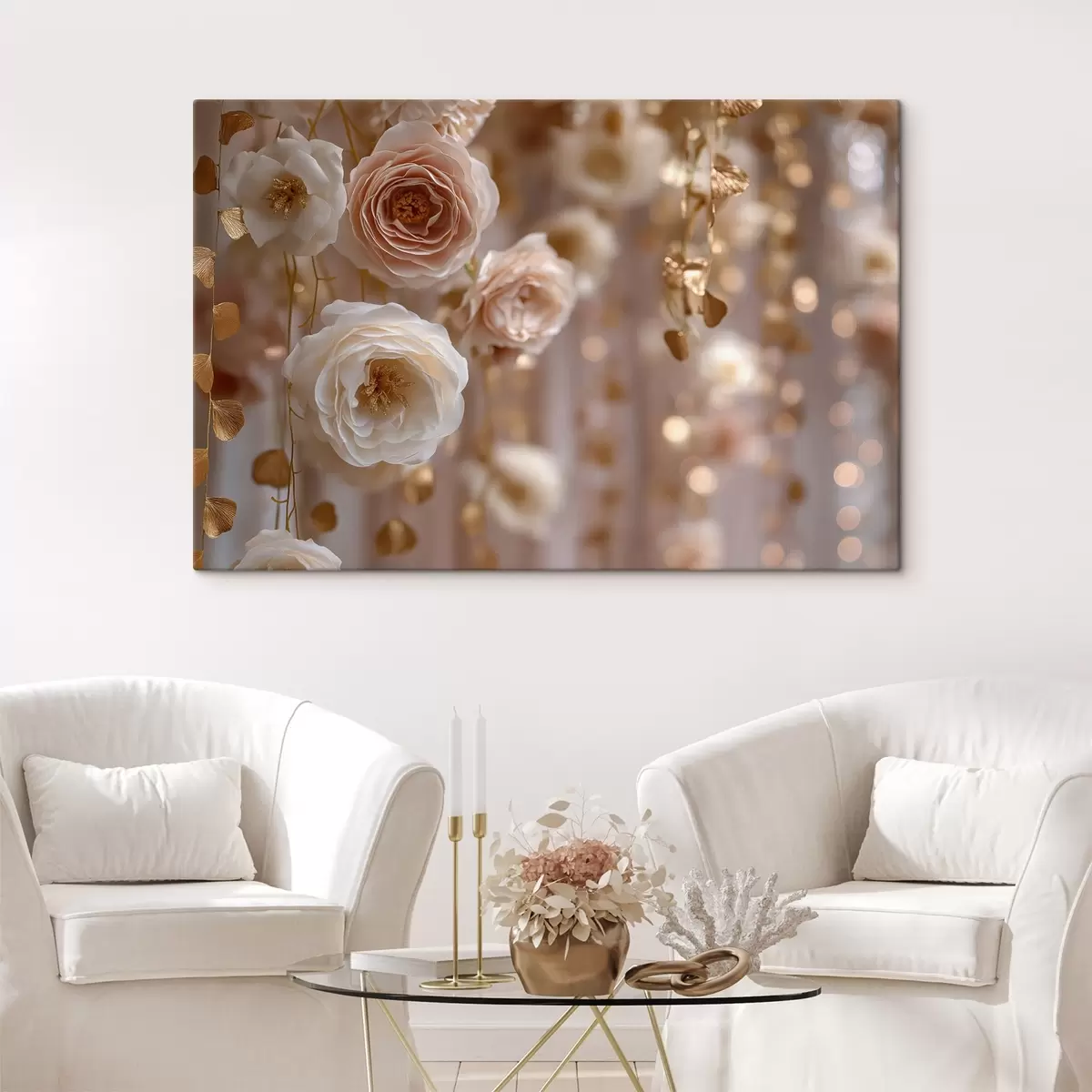 Obraz Krémové ruže so zlatými akcentmi Nr. s45824