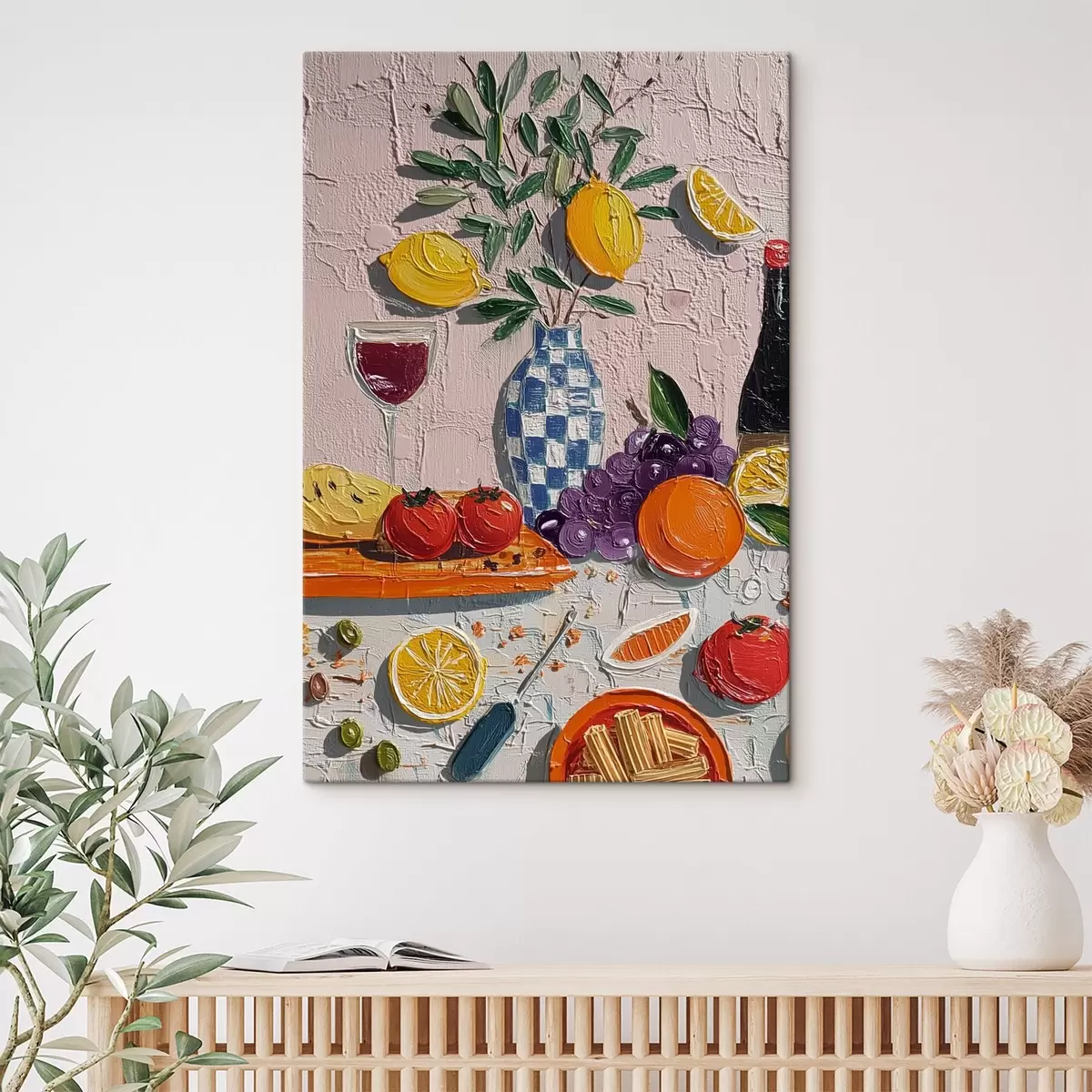 Obraz Pastelová zátišie: citróny, hrozno a paradajky, impasto Nr. s45876