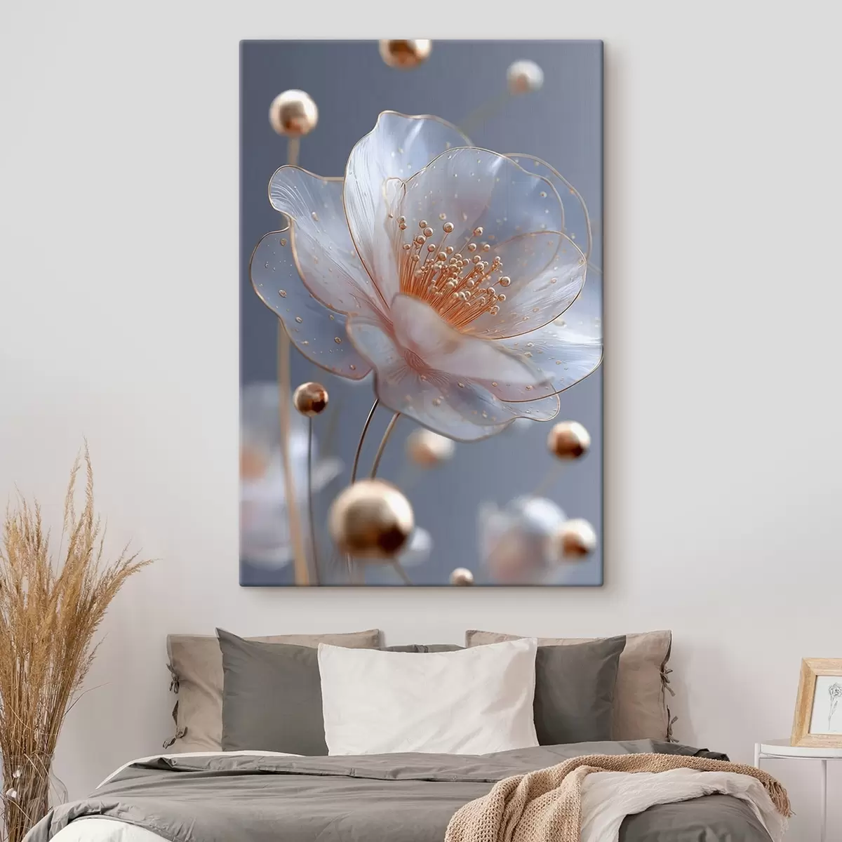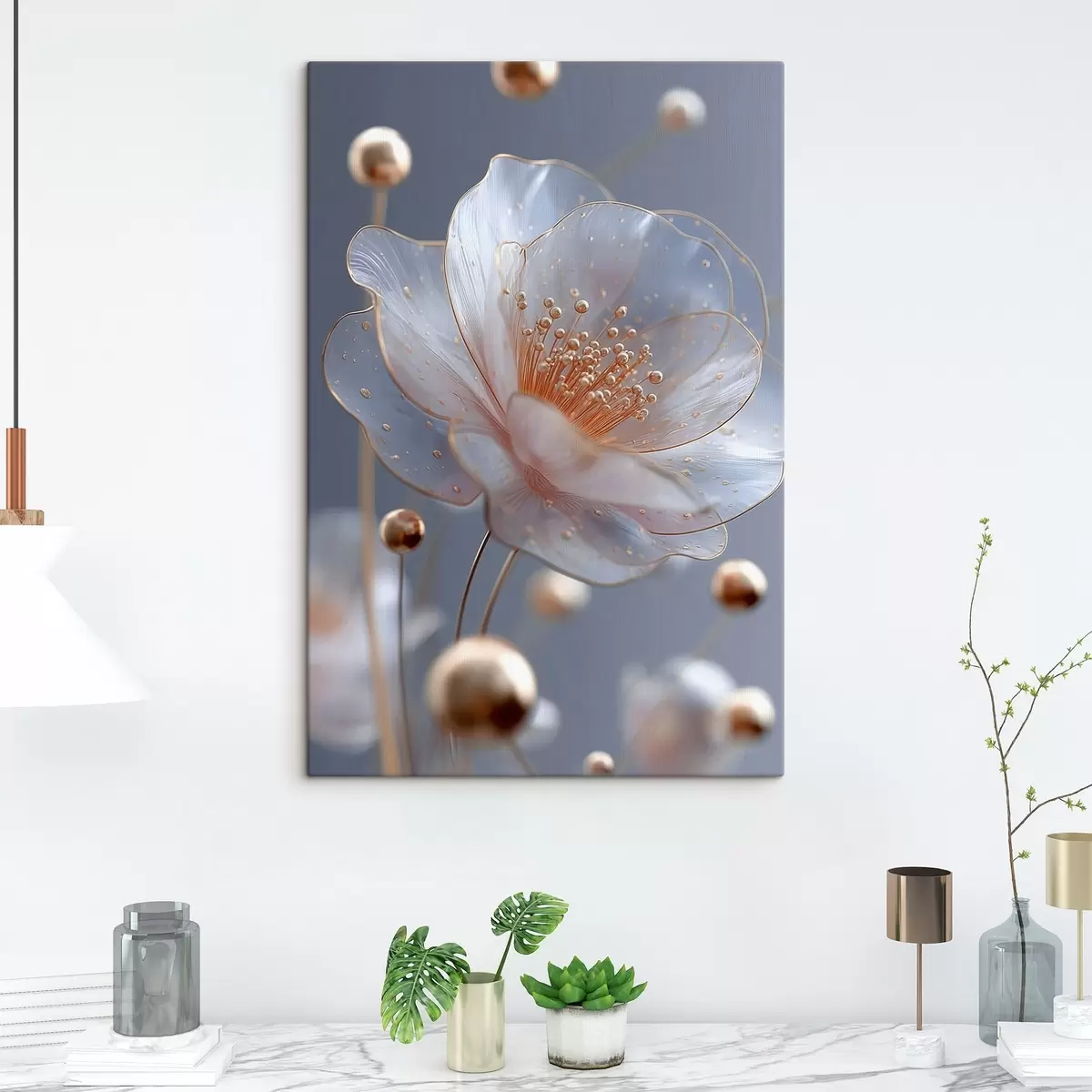 Obraz Priehľadná kvetina s medenými tyčinkami na modrom pozadí Nr. s45880