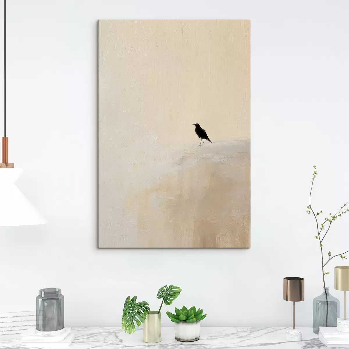 Obraz Osamelý vták na teplom béžovom pozadí Nr. s45882