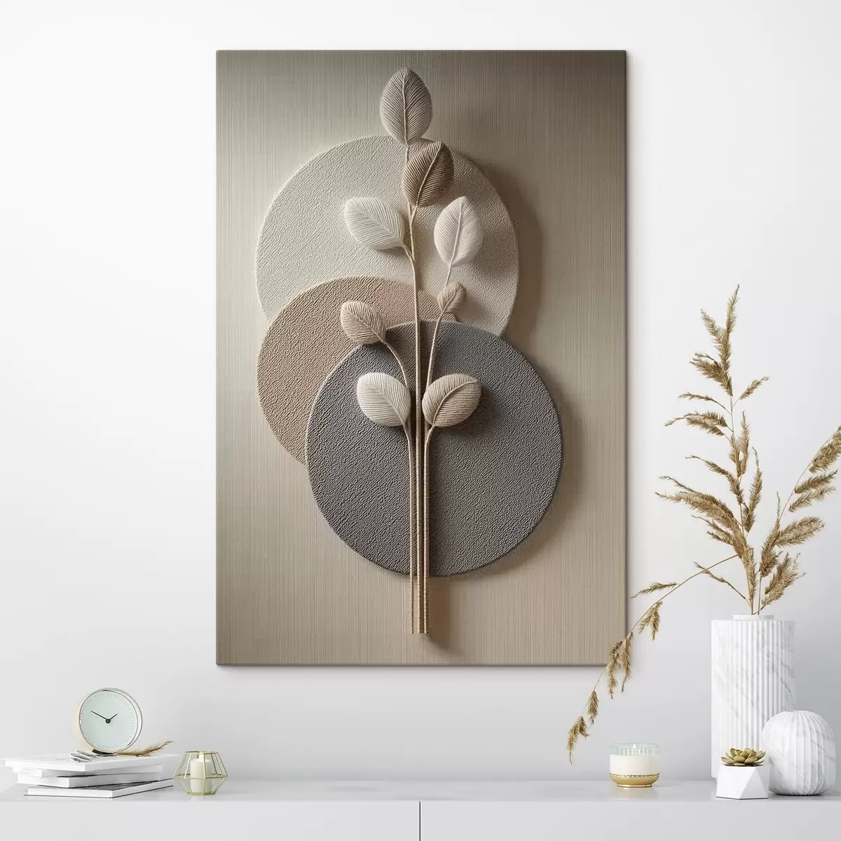 Obraz Reliefné kruhy a vetvička v teplých neutrálnych tónoch Nr. s45883