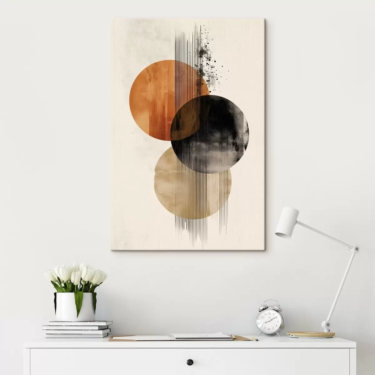 Obraz Tri textúrované kruhy s čiarami v terakotovo-čiernej farebnej palete Nr. s45885