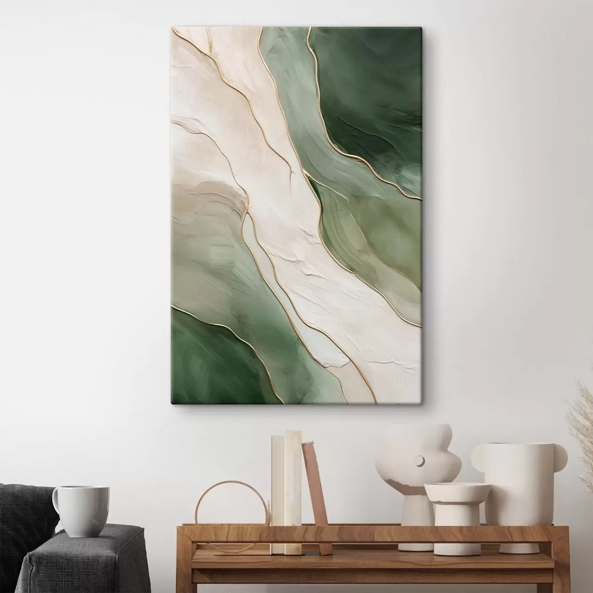 Obraz Smaragdová abstrakcia s jemnými žltými čiarami Nr. s45888