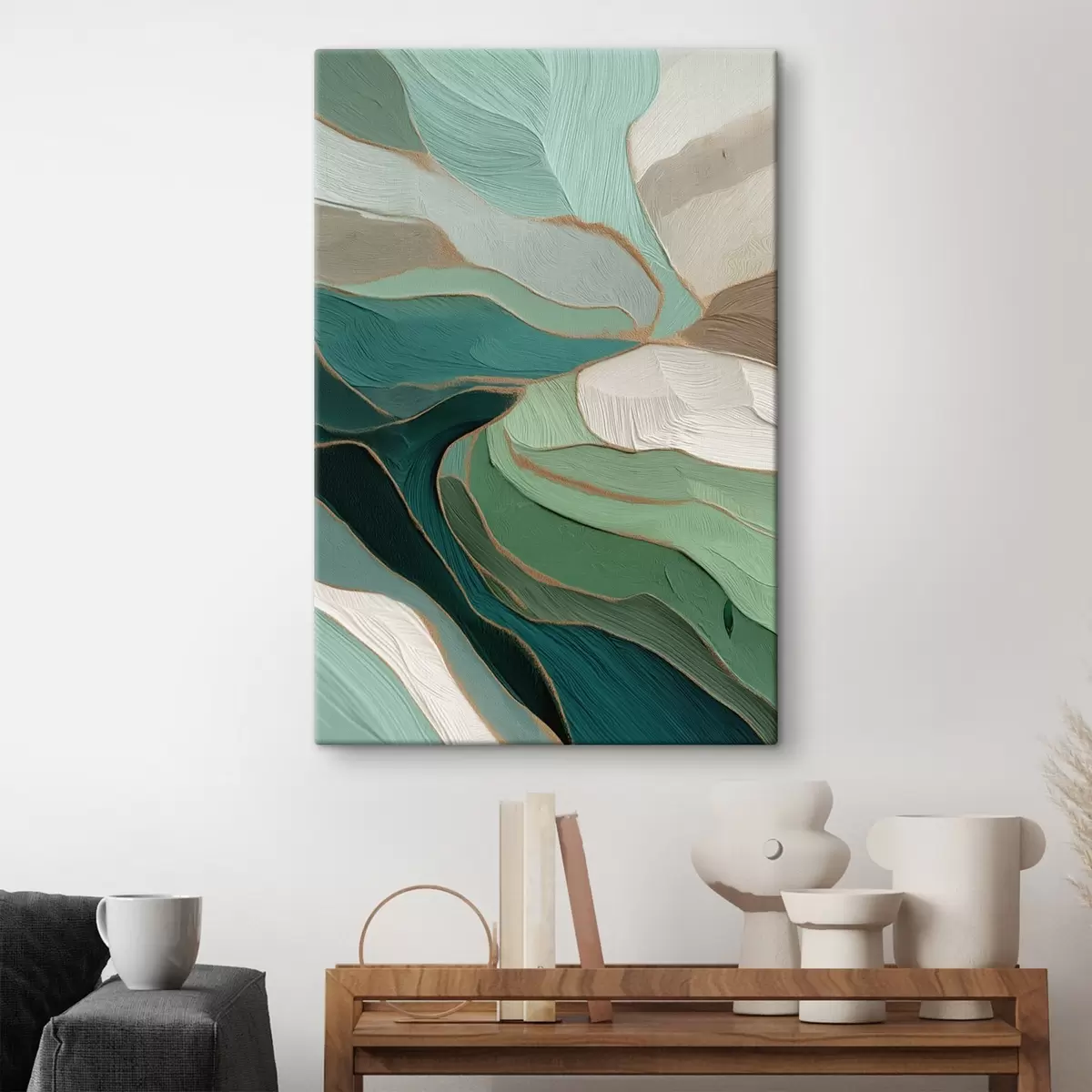 Obraz Šalviovo zelená abstrakcia so žltým obrysom Nr. s45901
