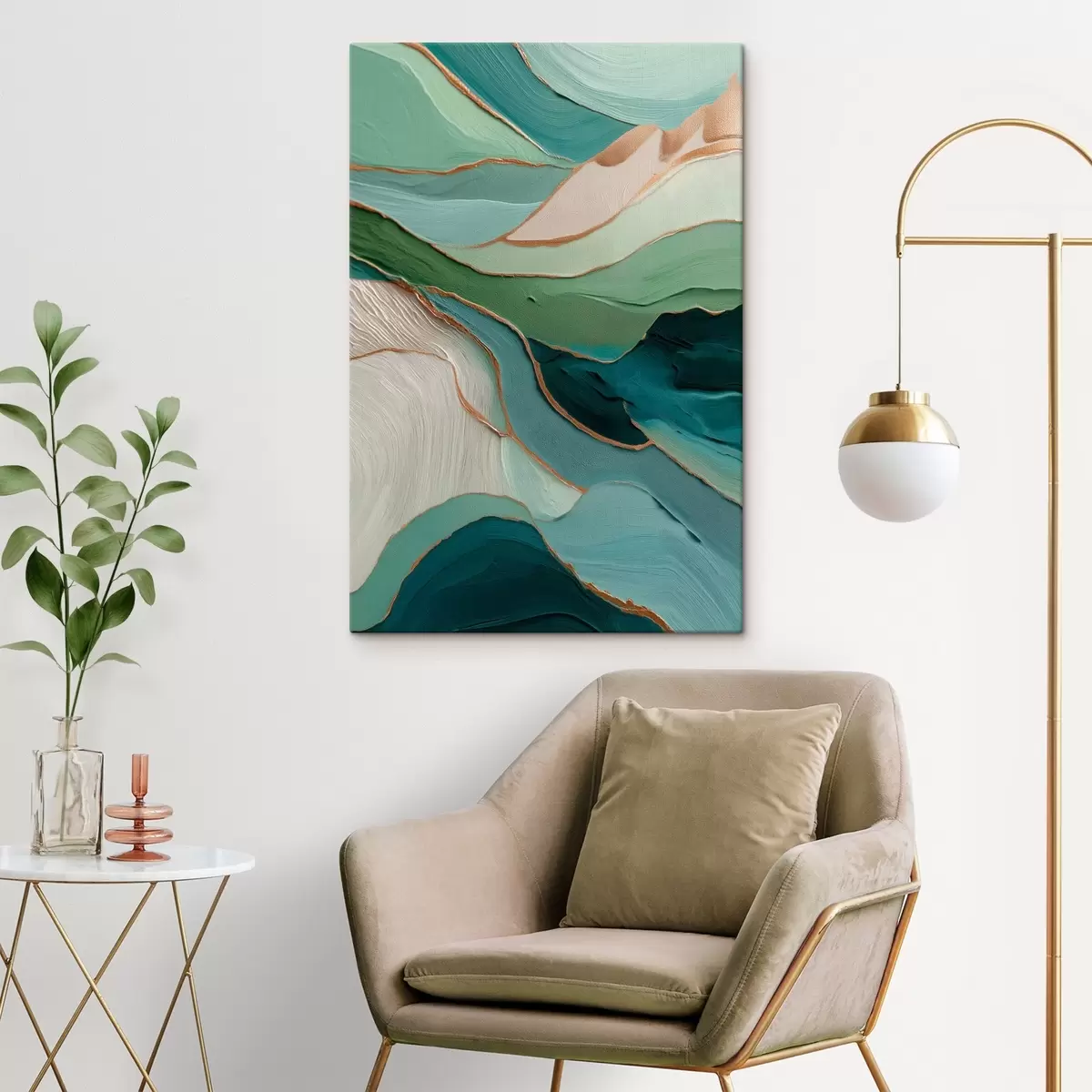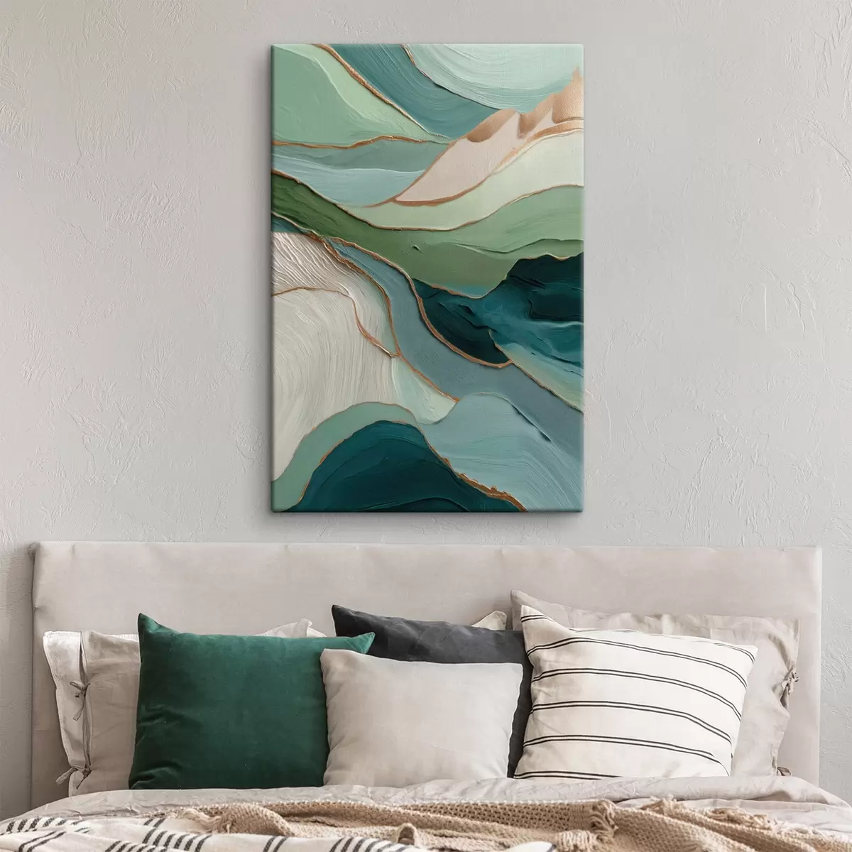 Obraz Vrstvená zelená abstrakcia so žltými čiarami a hĺbkou Nr. s45902