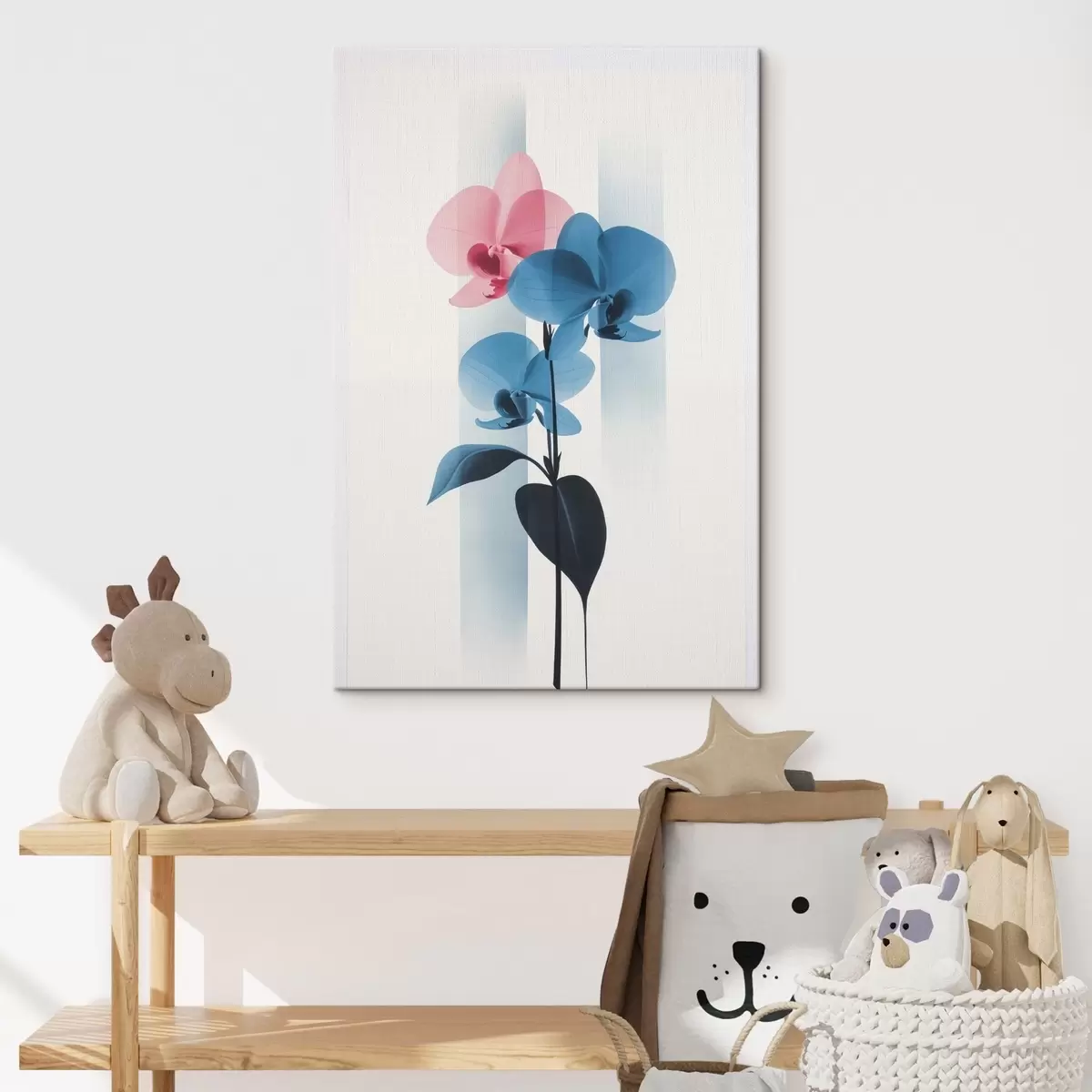 Obraz Orchidey s listami na bielom pozadí s vertikálnymi pruhmi Nr. s45925