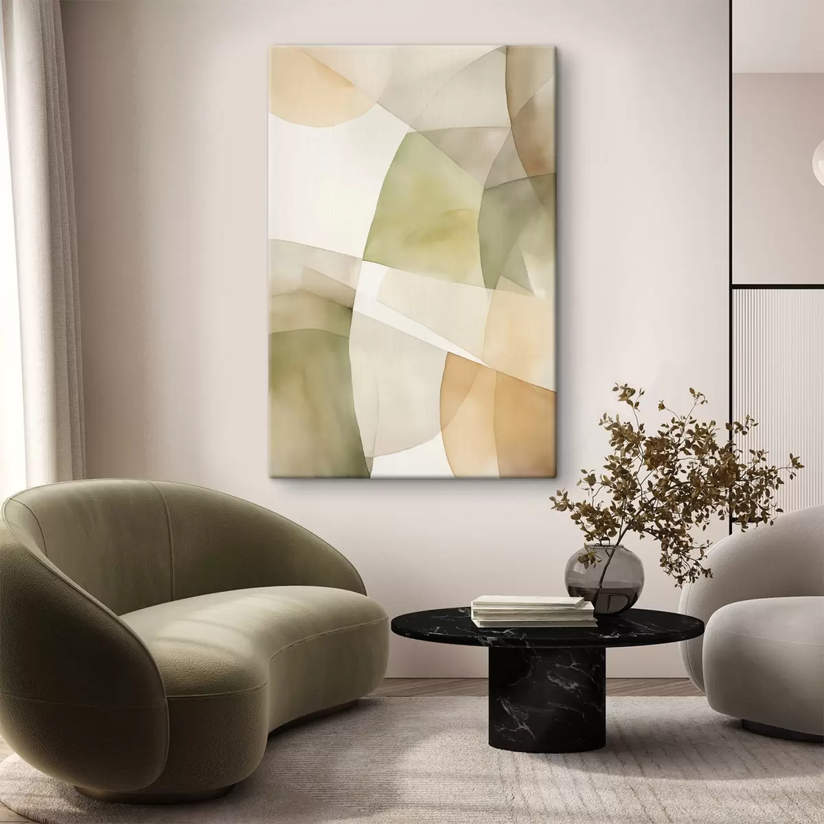 Obraz Abstraktné akvarelové geometrické tvary v odtieňoch zelenej, hnedej a béžovej farby Nr. s45928