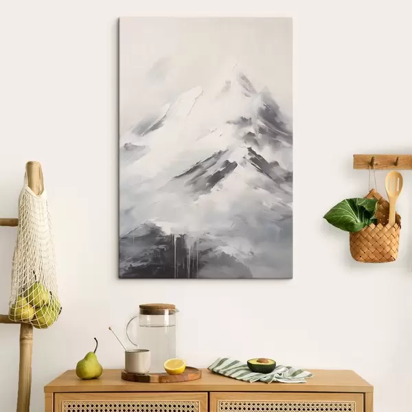 Obraz Zasnežené horské vrcholy so sivými tieňmi, sivá obloha, ťahy štetcom, textúrované, minimalistické Nr. s45932