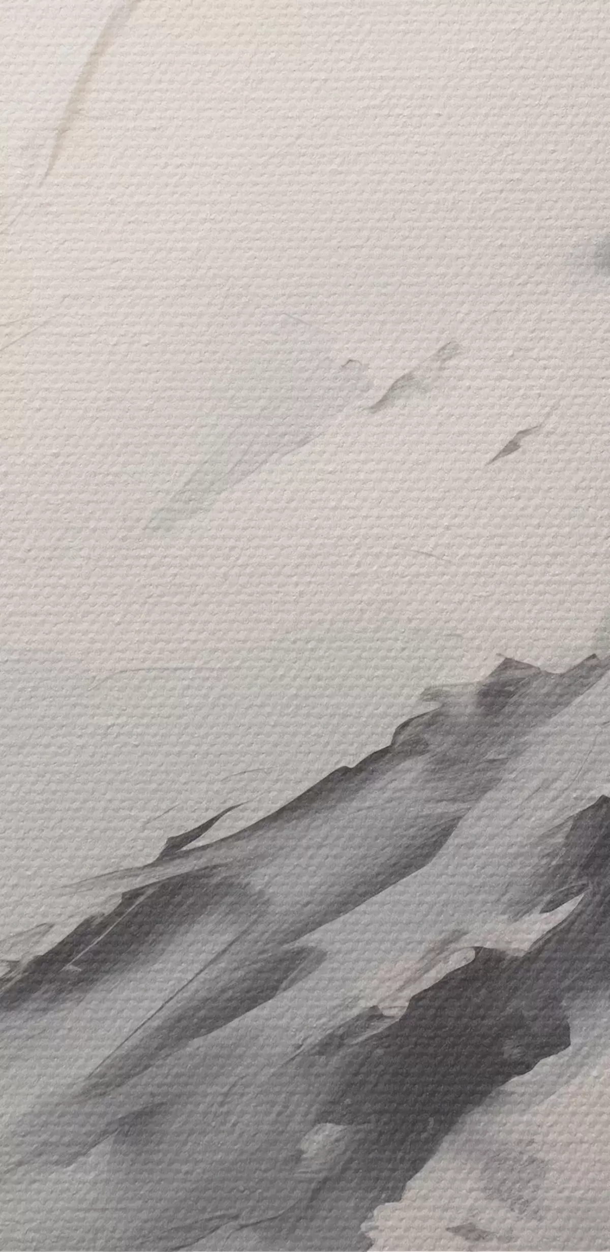 Obraz Zasnežené horské vrcholy so sivými tieňmi, sivá obloha, ťahy štetcom, textúrované, minimalistické Nr. s45932