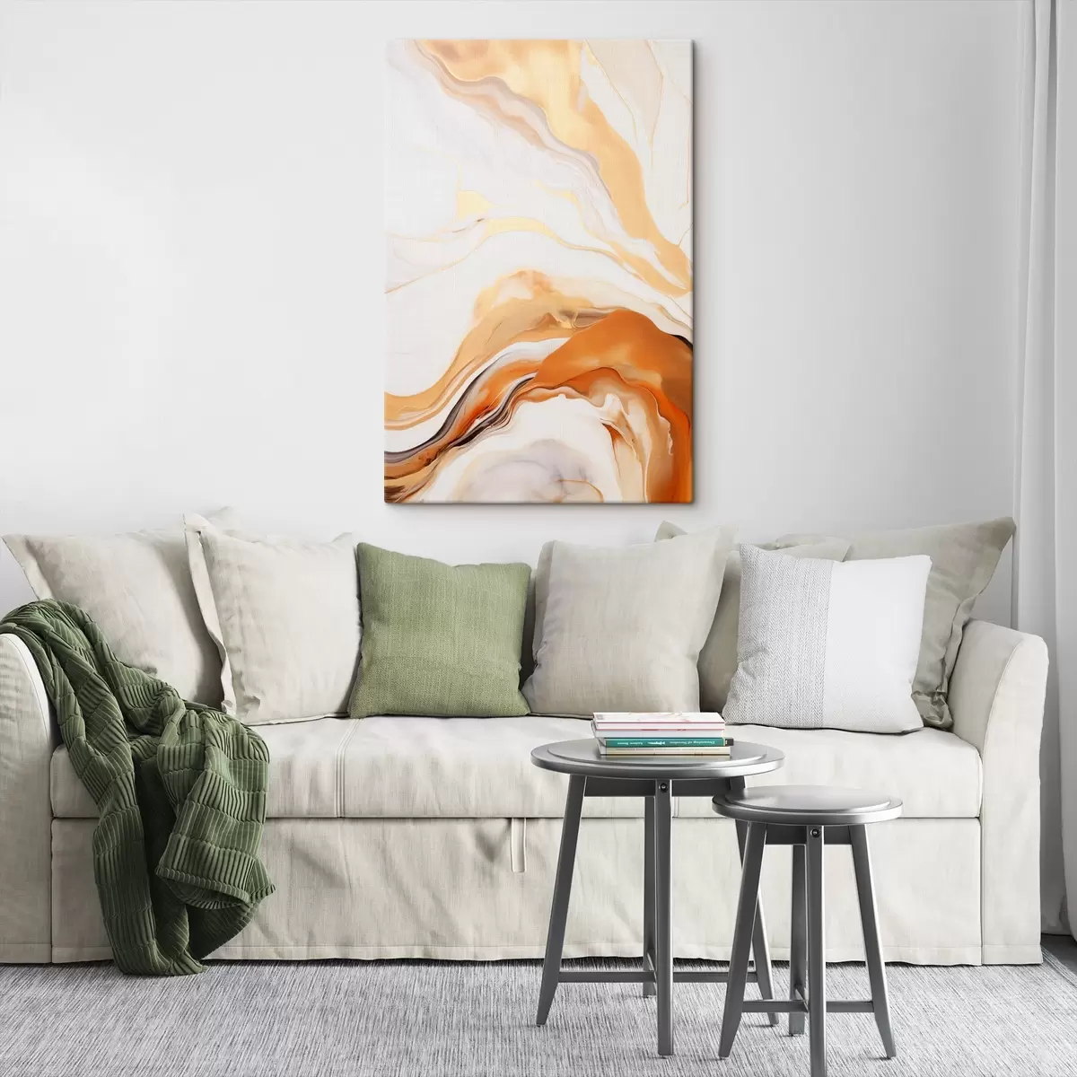 Obraz Abstraktná maľba s plynulými tvarmi v odtieňoch bielej, oranžovej a hnedej, minimalistická Nr. s45938