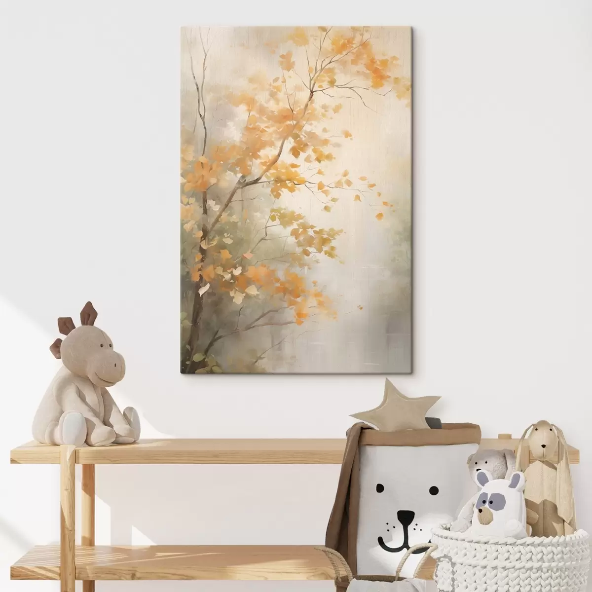 Obraz Jesenné konáre stromov s oranžovými listami v lese s mäkkým svetlom Nr. s45940