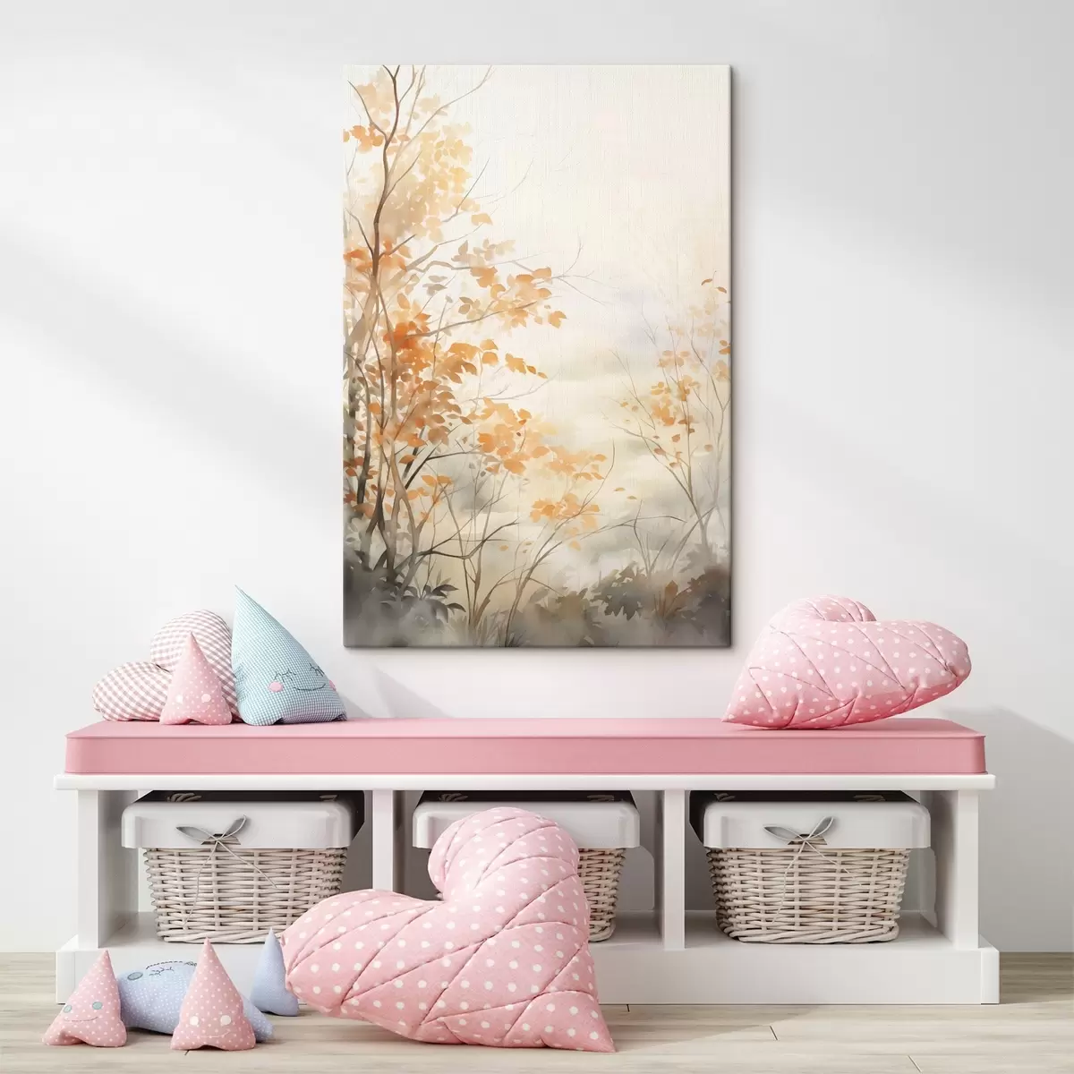 Obraz Jesenné stromy s oranžovými listami a vetvami, jemný akvarelový štýl, jemné ťahy štetcom Nr. s45941