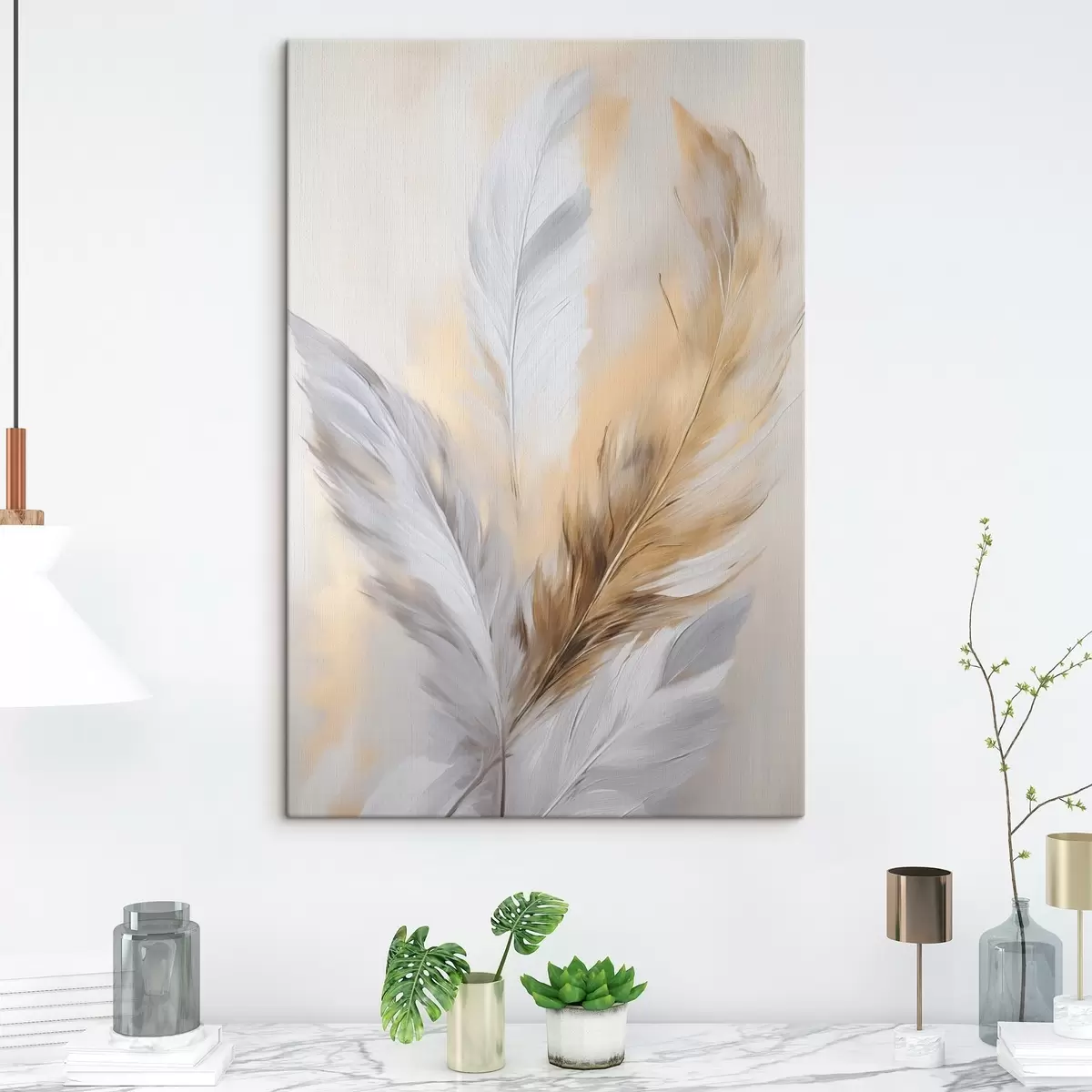 Obraz Perie s oranžovými akcentmi, textúrovaná minimalistická kompozícia, moderné umenie Nr. s45945