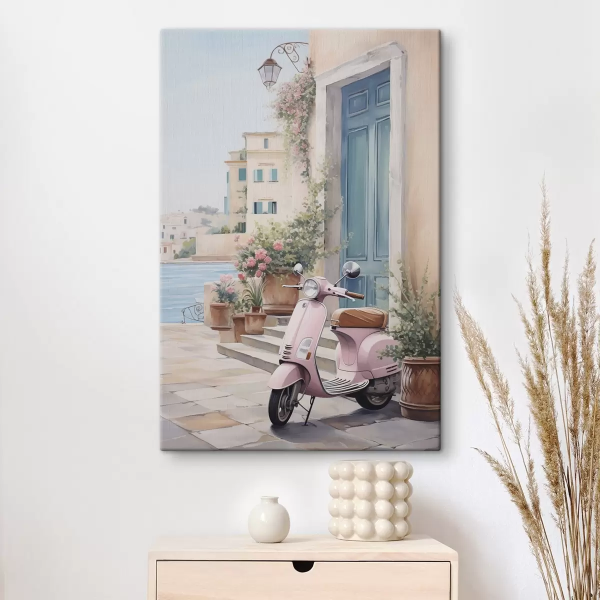 Obraz Kolobežka na pozadí domu Nr. s46065