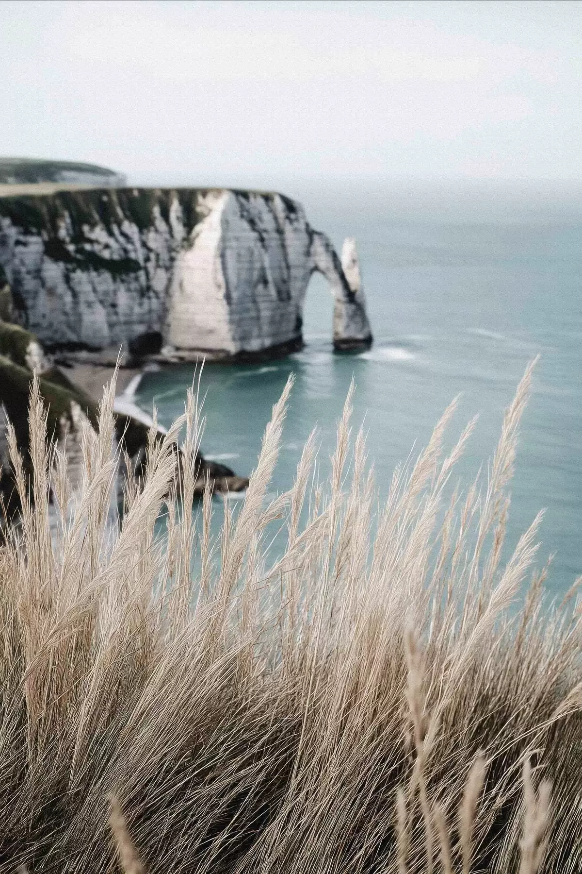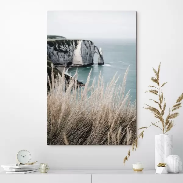 Obraz More a skalný oblúk, pohľad cez suchú trávu Nr. s46142